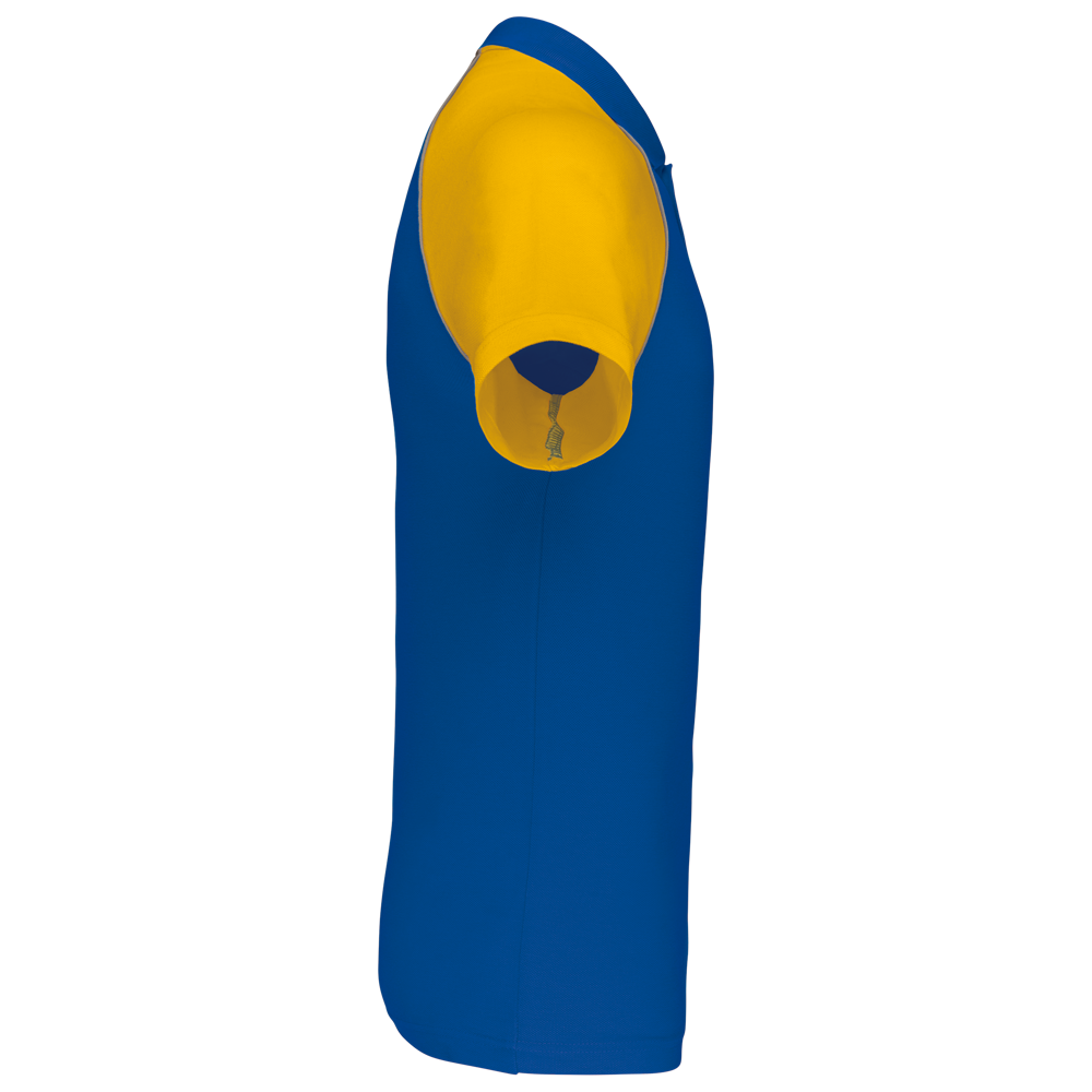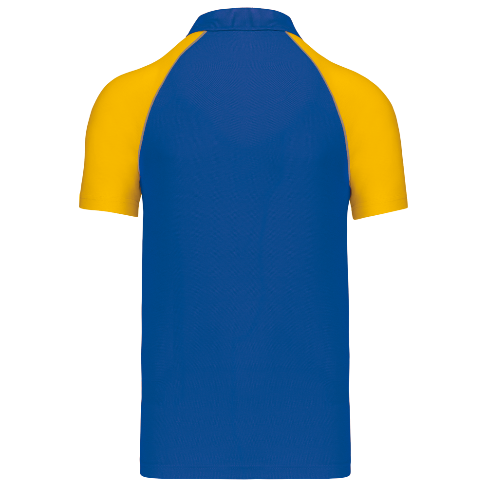 100% katoen piqué. Kraag in rib en afgewerkt met nektape. Raglan mouwen in contrastkleur en...meer