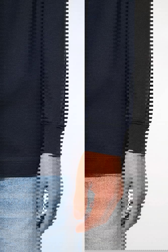 100% voorgekrompen piquékatoen (Oxford grey : 90% katoen / 10% viscose). Comfortabele snit. Kraag en mouwuiteinden in 1x1 ribboord. Knooplijst met 3 toon-op-toon knopen. Toon op toon nektape.