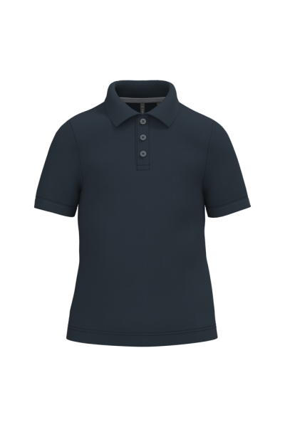 100% katoen piqué. Wasbaar op 60°C. Kraag en mouwuiteinden in rib. Nektape en zijsplitjes in contrastkleur. Knooplijst met 3 knopen. Afwerking met dubbele stiksels aan de onderkant.