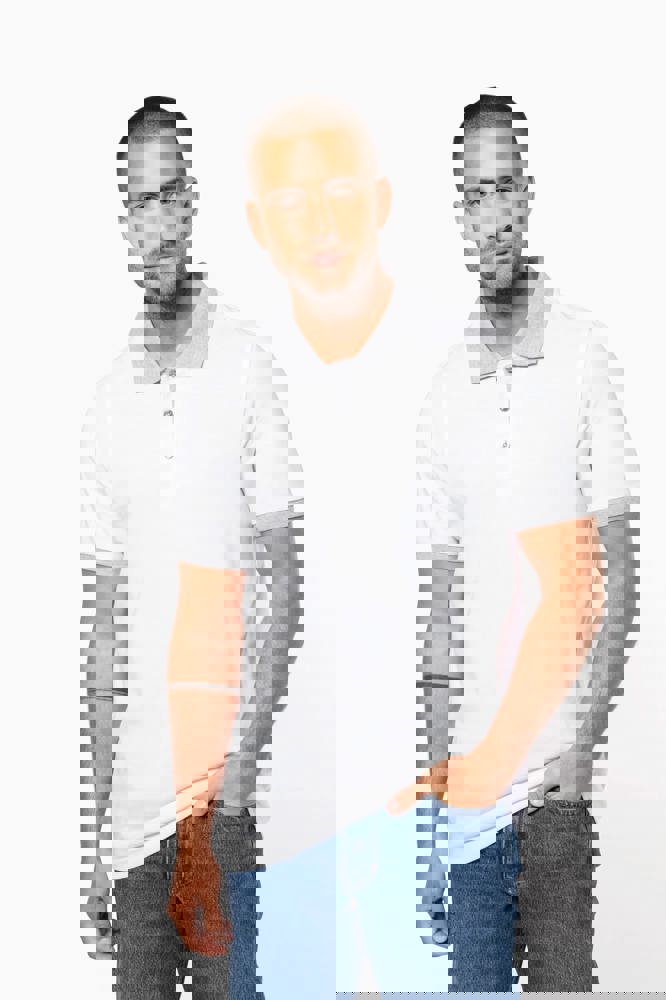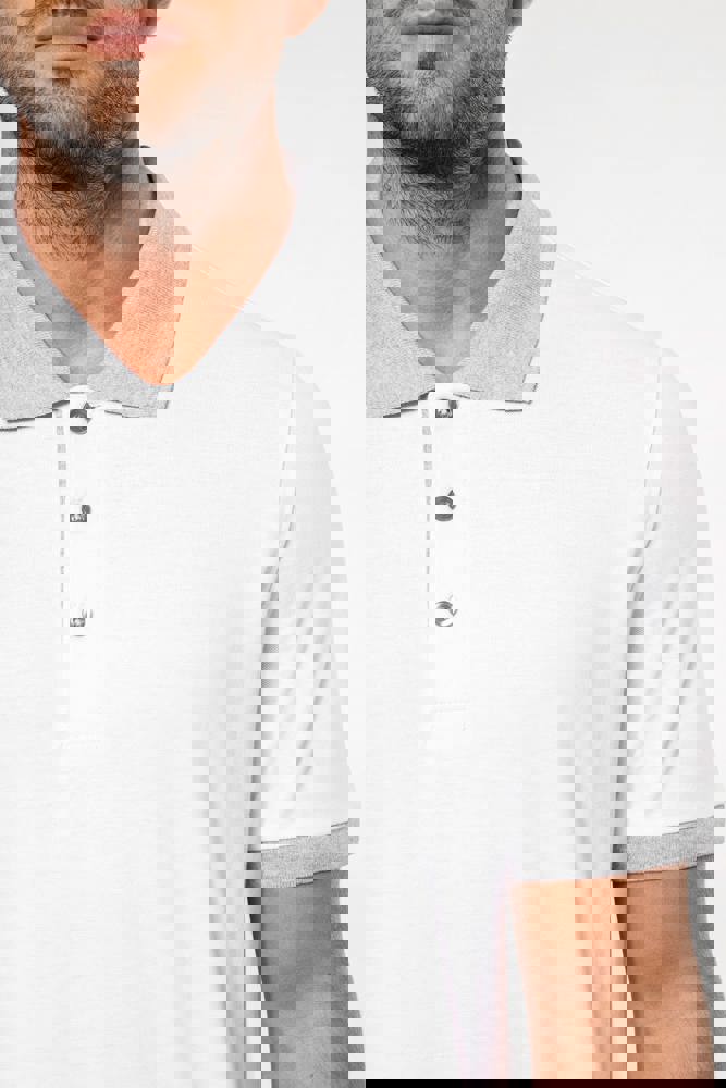 100% voorgekrompen katoen piqué (Oxford Grey: 90% katoen / 10% viscose). Contrasterende ribboord...meer