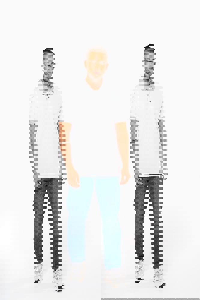 100% voorgekrompen katoen piqué (Oxford Grey: 90% katoen / 10% viscose). Contrasterende ribboord aan de kraag en mouwuiteinden. Contrasterende nektape. Aan de binnenzijde een contrasterende knooplijst met 3 knopen. Afwerking met dubbel stiksel onderaan.