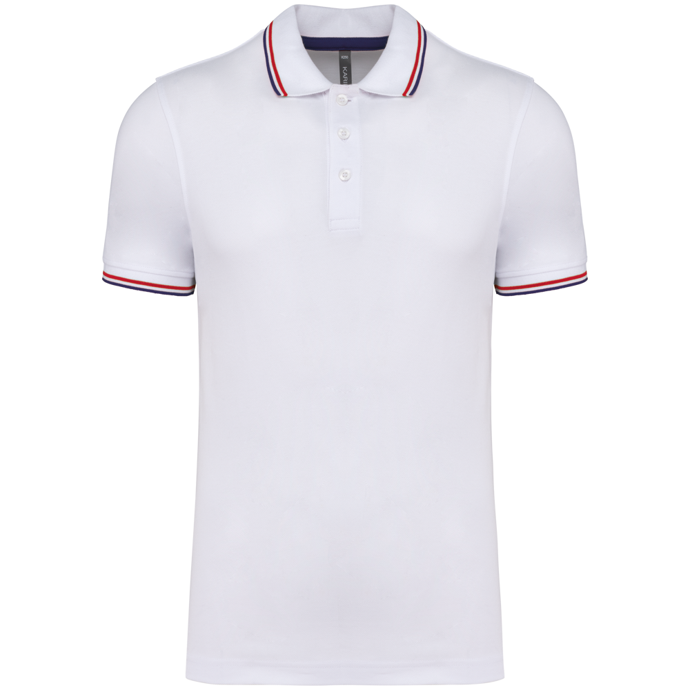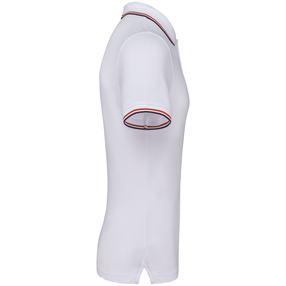 100% katoen piqué. Knooplijst met 3 knopen. Nektape en zijsplitjes in contrastkleur. Afwerking in rib met gecontrasteerde rand aan de kraag en mouwuiteinden. Afgewerkt met dubbele stiksels onderaan.