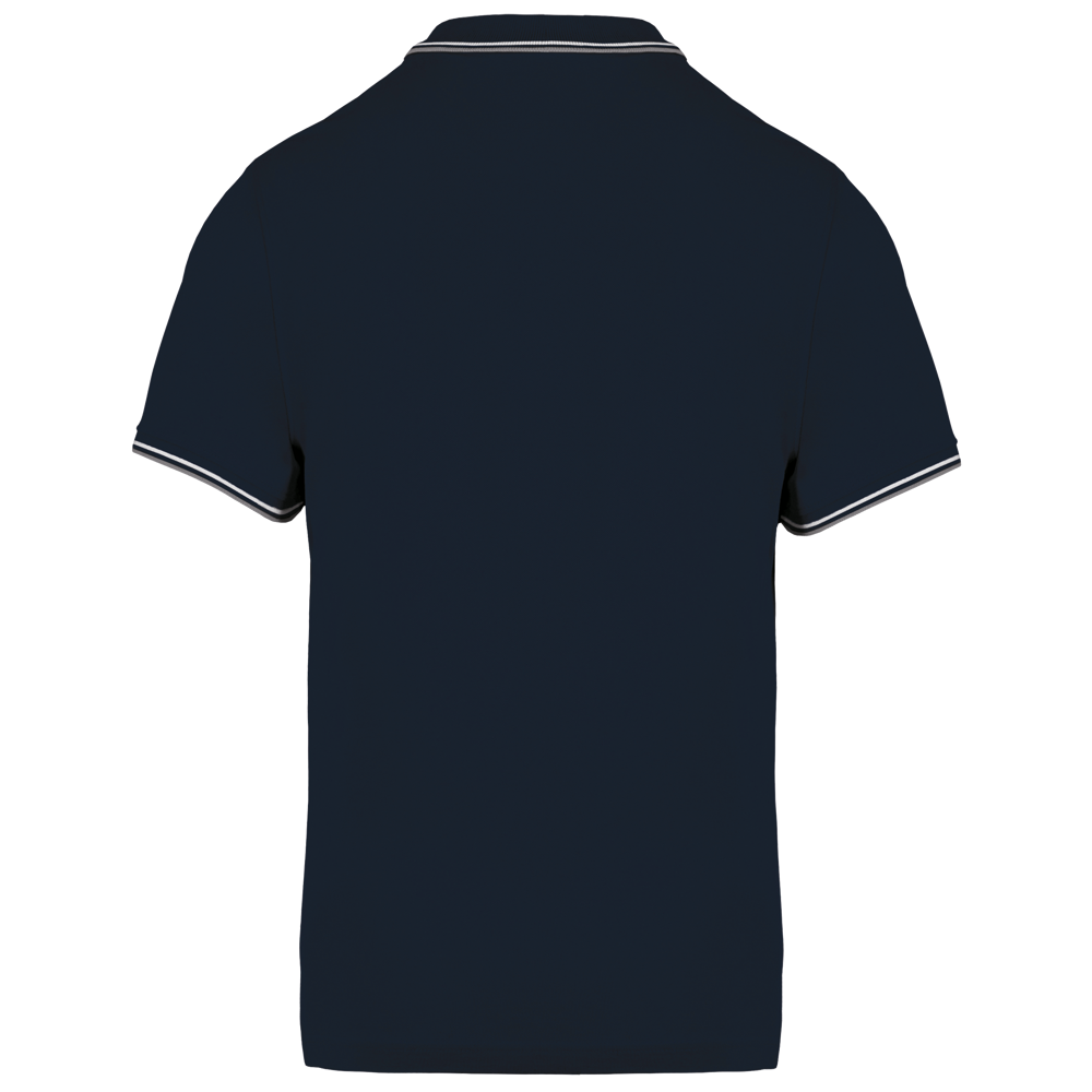 100% katoen piqué. Knooplijst met 3 knopen. Nektape en zijsplitjes in contrastkleur. Afwerking in rib met gecontrasteerde rand aan de kraag en mouwuiteinden. Afgewerkt met dubbele stiksels onderaan.