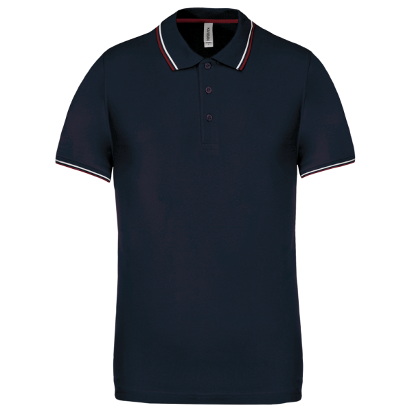 100% katoen piqué. Knooplijst met 3 knopen. Nektape en zijsplitjes in contrastkleur. Afwerking in rib met gecontrasteerde rand aan de kraag en mouwuiteinden. Afgewerkt met dubbele stiksels onderaan.