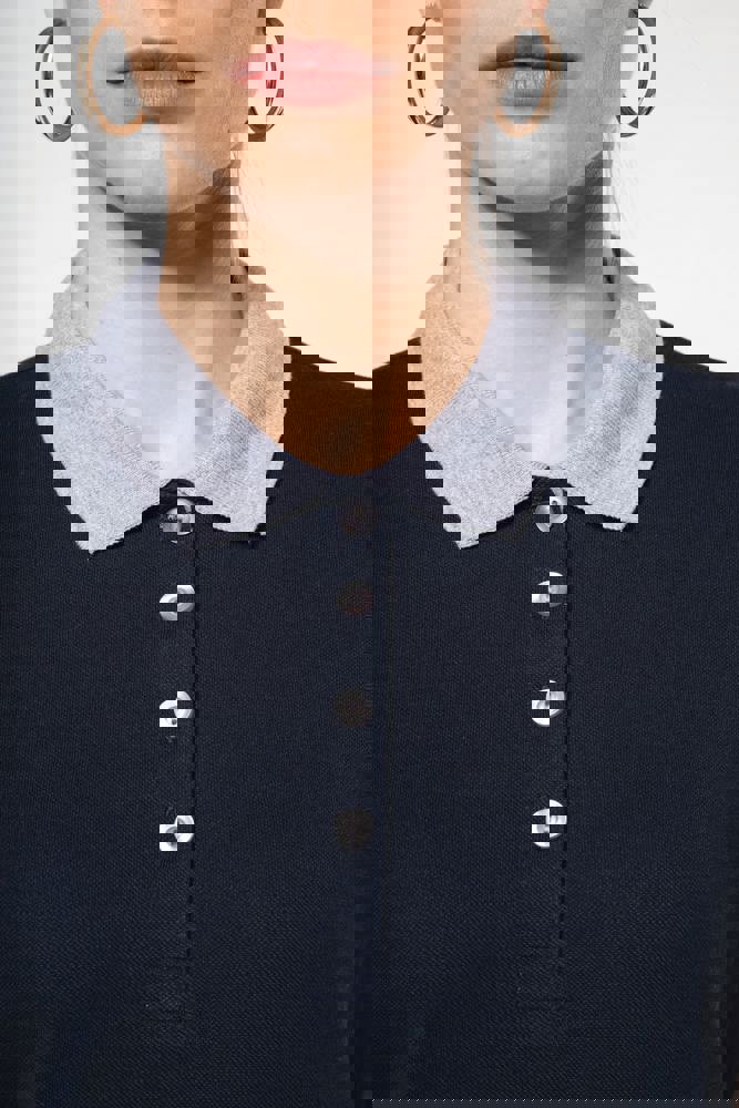 100% voorgekrompen katoen piqué (Oxford Grey: 90% katoen / 10% viscose). Contrasterende ribboord...meer