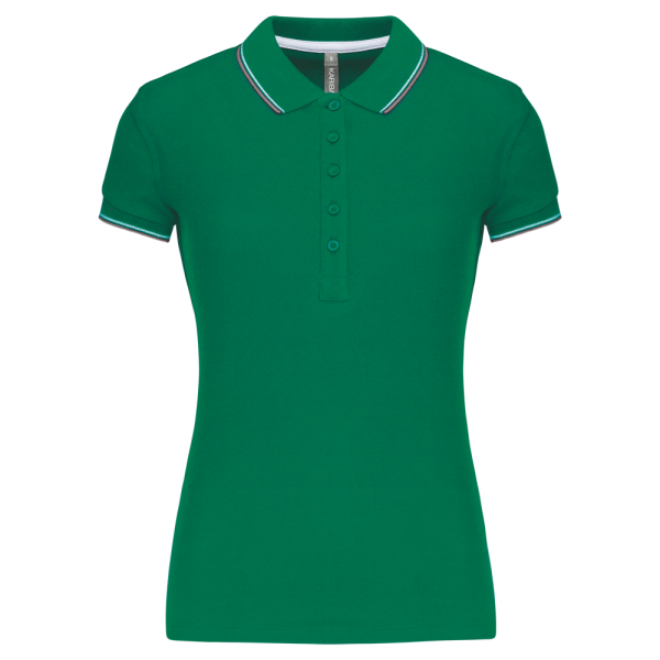 100% katoen piqué. Knooplijst met 5 knopen. Nektape en zijsplitjes in contrastkleur. Afwerking in rib met gecontrasteerde rand aan de kraag en mouwuiteinden. Afgewerkt met dubbele stiksels onderaan.