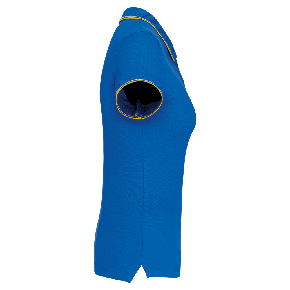 100% katoen piqué. Knooplijst met 5 knopen. Nektape en zijsplitjes in contrastkleur. Afwerking in rib met gecontrasteerde rand aan de kraag en mouwuiteinden. Afgewerkt met dubbele stiksels onderaan.