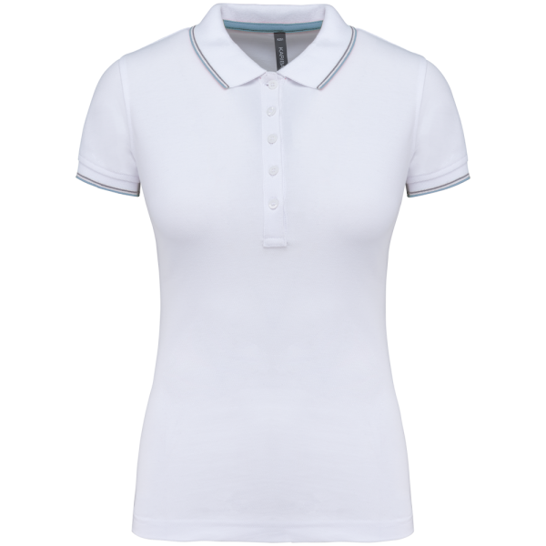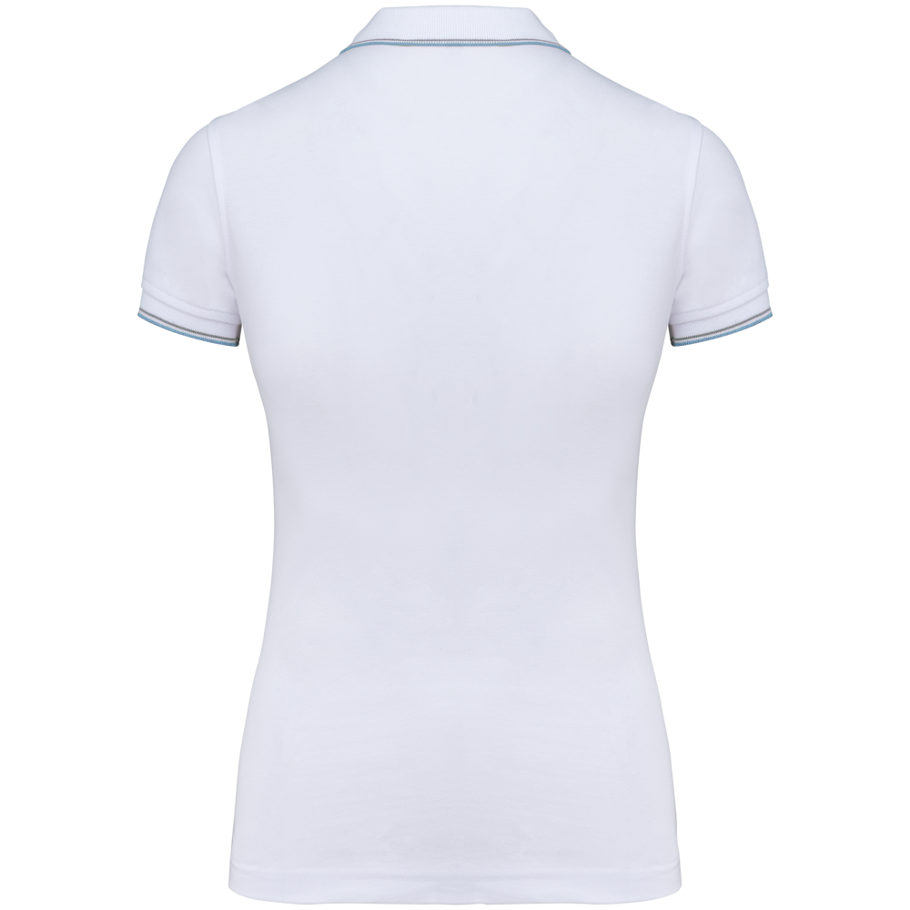 100% katoen piqué. Knooplijst met 5 knopen. Nektape en zijsplitjes in contrastkleur. Afwerking in rib met gecontrasteerde rand aan de kraag en mouwuiteinden. Afgewerkt met dubbele stiksels onderaan.
