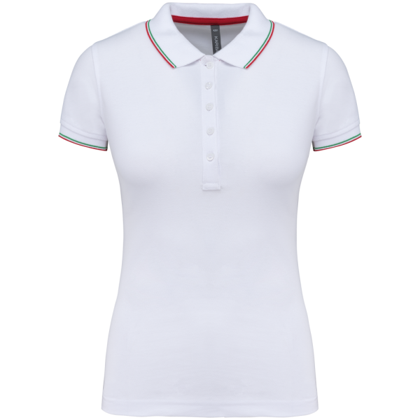 100% katoen piqué. Knooplijst met 5 knopen. Nektape en zijsplitjes in contrastkleur. Afwerking in rib met gecontrasteerde rand aan de kraag en mouwuiteinden. Afgewerkt met dubbele stiksels onderaan.