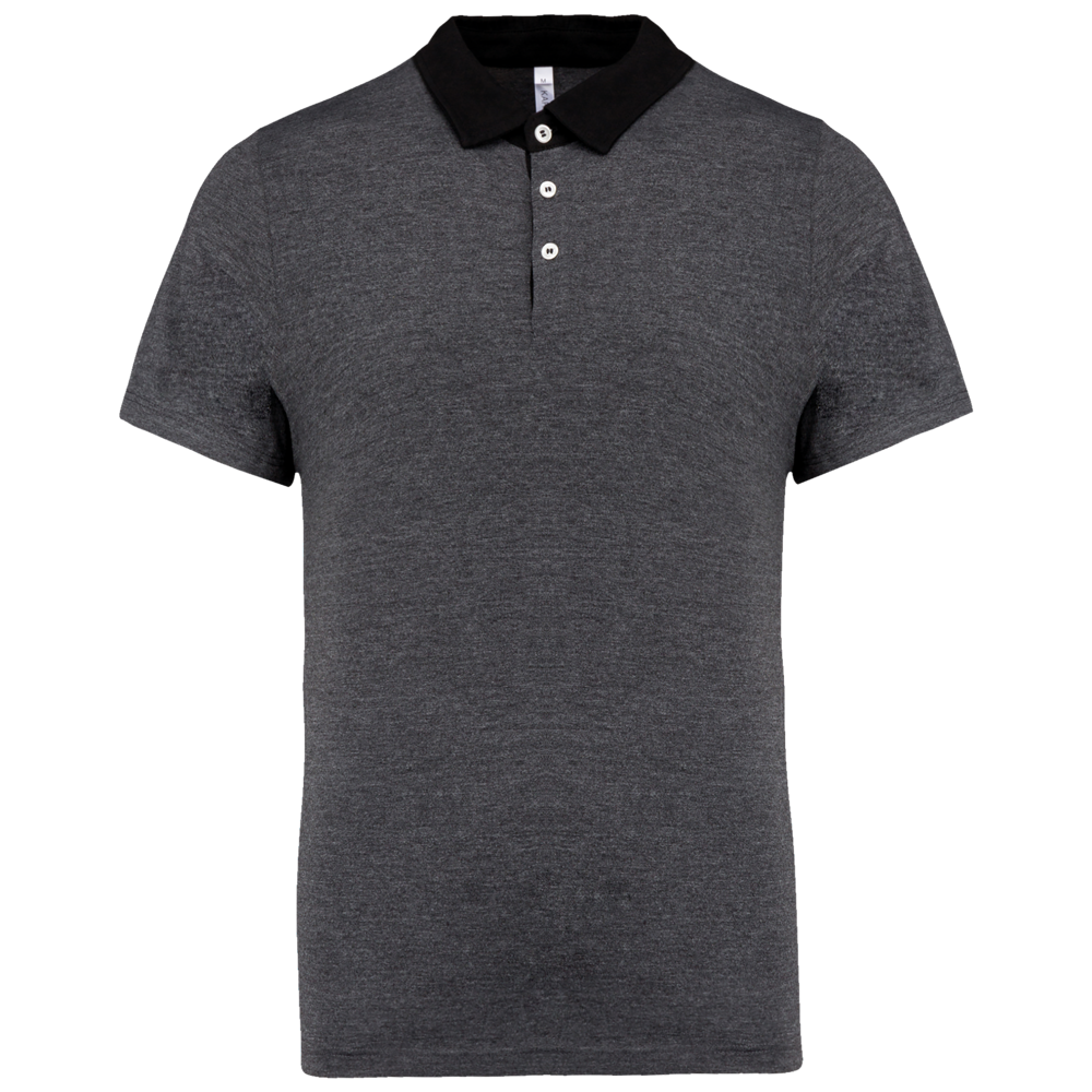 100% katoen (Dark Grey Heather: 65% polyester / 35% katoen). Gekamd katoen enzymgewassen. Contrasterende overhemdkraag en knooplijst aan de binnenzijde met 3 witte parelmoer knopen. Dubbel stiksel aan mouwuiteinden en onderkant.
