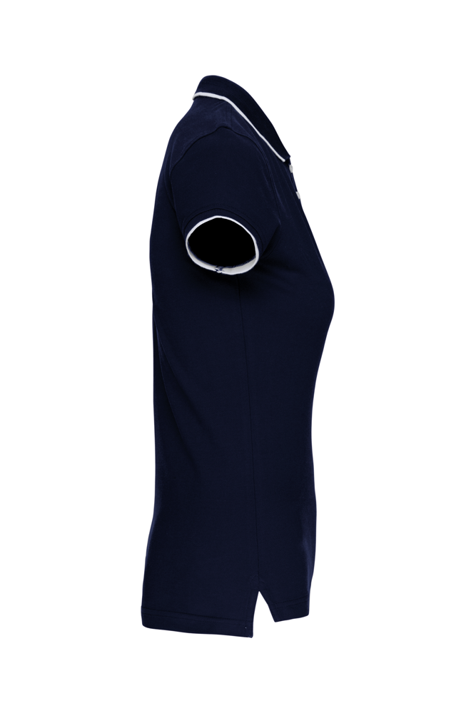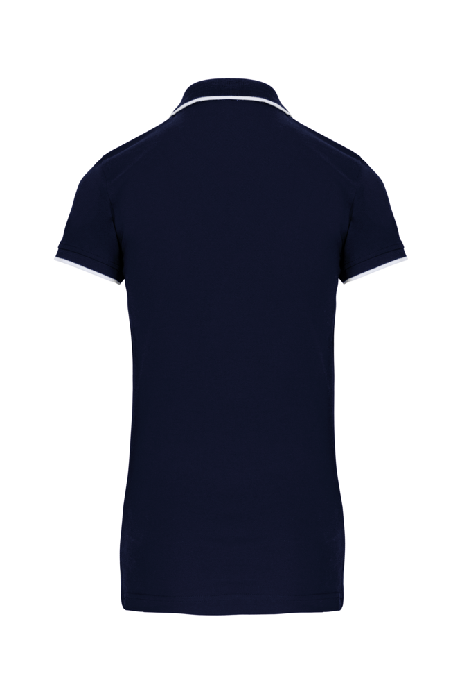 100% katoen piqué. Kraag in rib met bies in contrastkleur aan de boven- en onderkant (behalve White/ Navy : geen contrast onder de kraag, alleen een dunne rode rand onder de sluiting). Nektape en zijsplitjes in contrastkleur. Fantasie knooplijst met 5 knopen. Mouwuiteinden in rib met bies in contrastkleur. Afwerking met dubbele stiksels aan de onderkant. De kraag is verstevigd aan de achterkant en kan omhoog of omlaag gedragen worden.