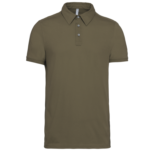 100% gekamd katoen (French Navy Heather: 80% katoen / 20% polyester - Grey Heather: 65% polyester/35% katoen - Oxford Grey : 90% katoen / 10% viscose). Jersey. Hemdskraag. Knooplijst met 3 metalen knopen. Inzetstuk op de schouder. Afgewerkt met ribboord aan de mouwuiteinden. Dubbel stiksel aan de onderkant.