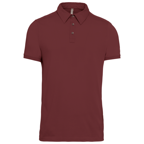 100% gekamd katoen (French Navy Heather: 80% katoen / 20% polyester - Grey Heather: 65% polyester/35% katoen - Oxford Grey : 90% katoen / 10% viscose). Jersey. Hemdskraag. Knooplijst met 3 metalen knopen. Inzetstuk op de schouder. Afgewerkt met ribboord aan de mouwuiteinden. Dubbel stiksel aan de onderkant.