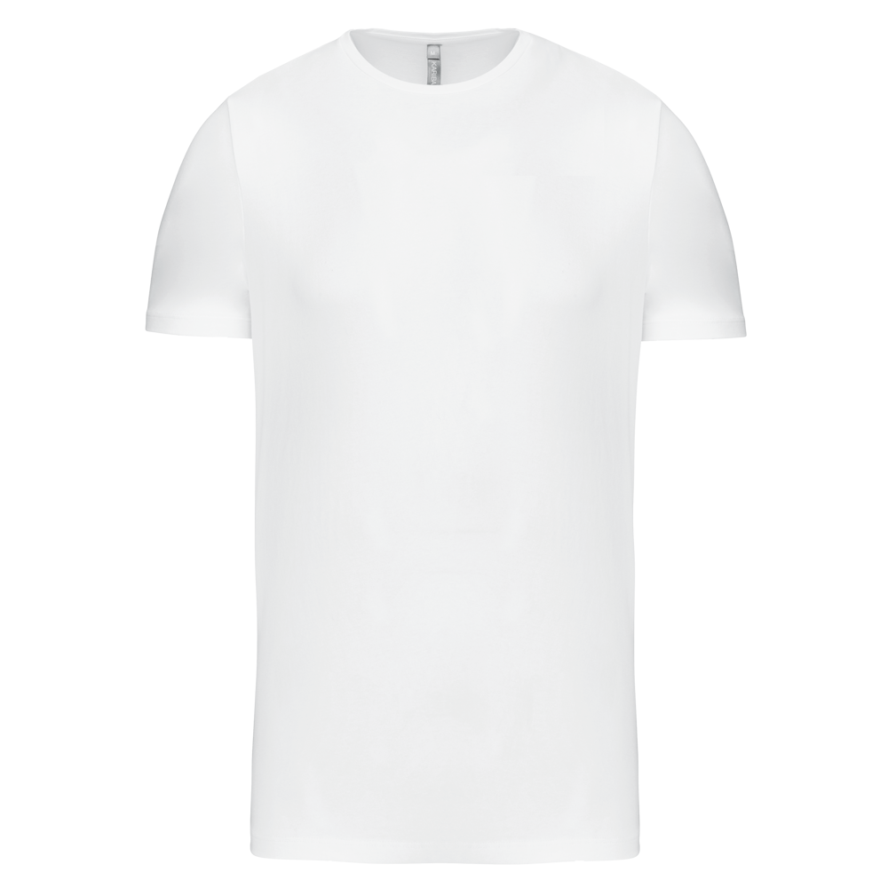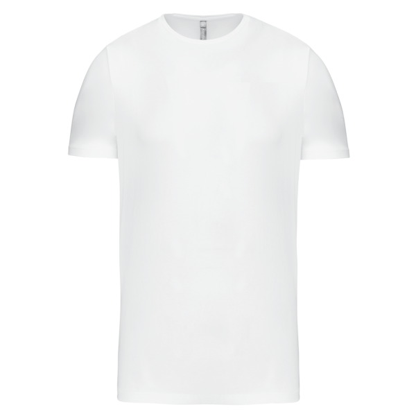 97% katoen / 3% elasthan. Voor chiné kleuren: 87% katoen / 9% viscose / 4% elasthan. Ronde hals. Dubbel stiksel aan mouwuiteinden en onderkant. De moderne en nauwsluitende snit zijn volgens de confectie standaards.