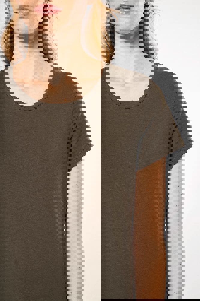 97% katoen / 3% elasthan. Chiné kleuren: 87% katoen / 9% viscose / 4% elasthan. Ronde hals....meer