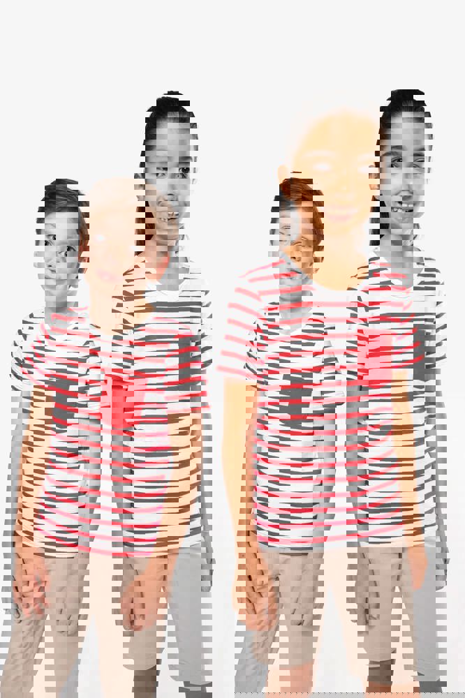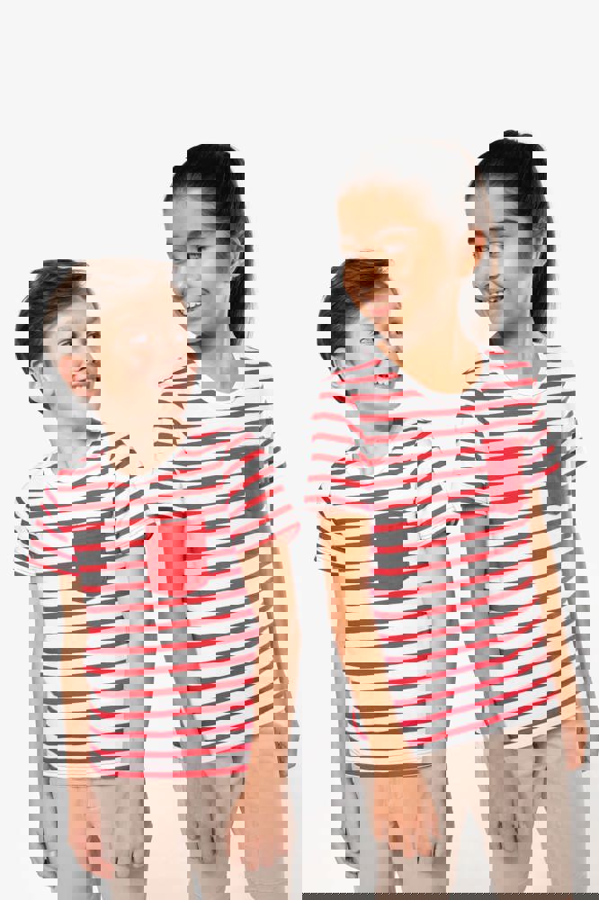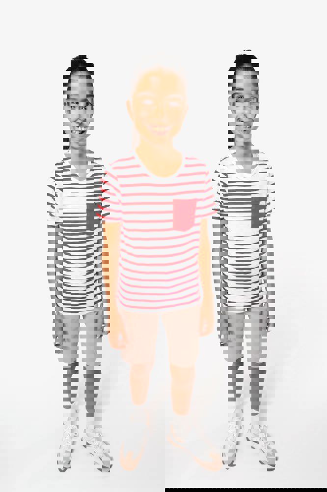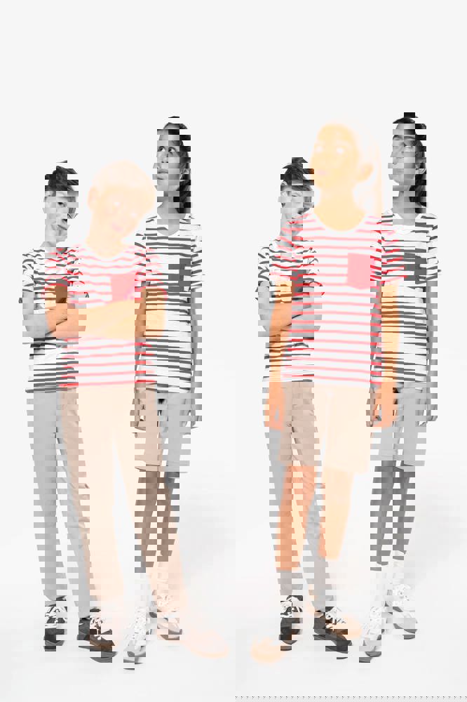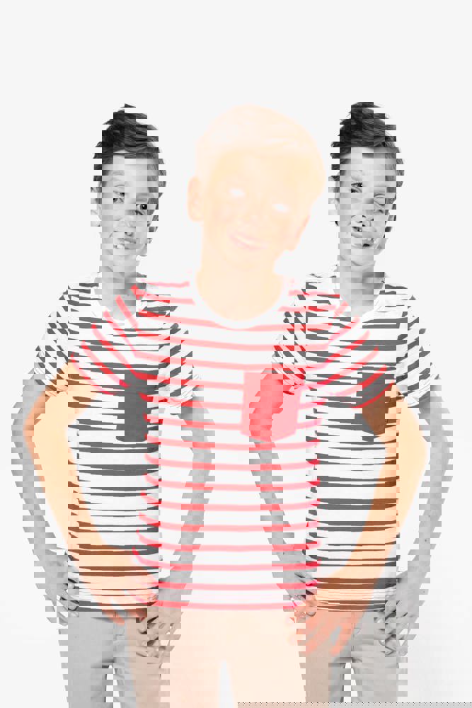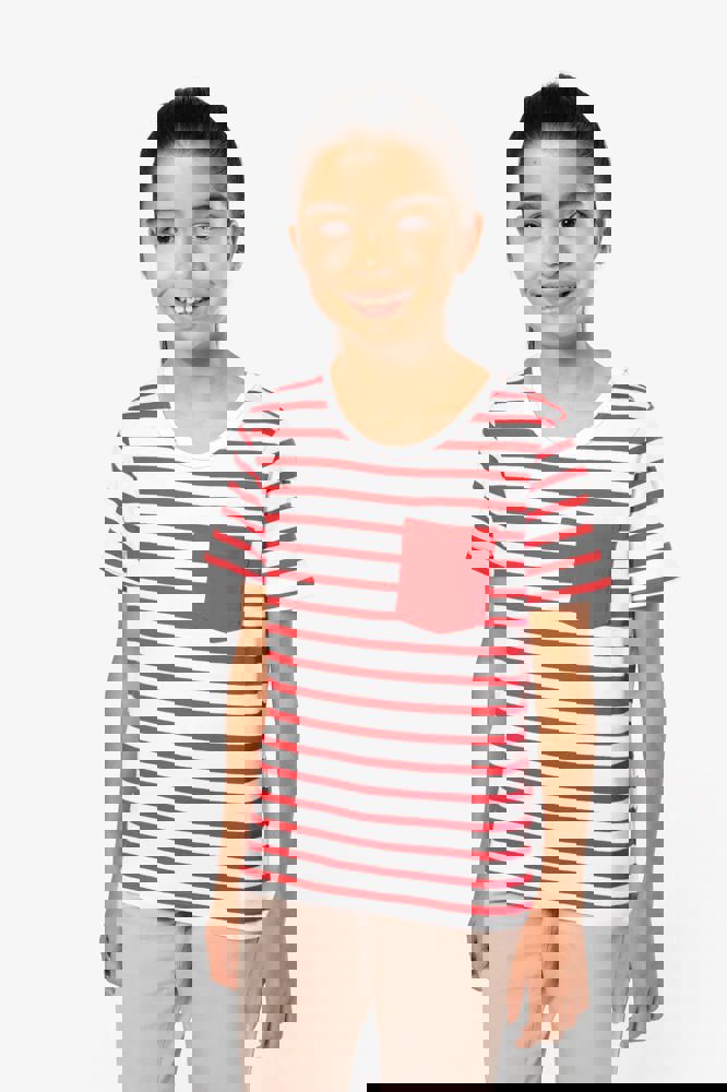 K379 - Gestreept T-shirt met zak en korte mouwen kids