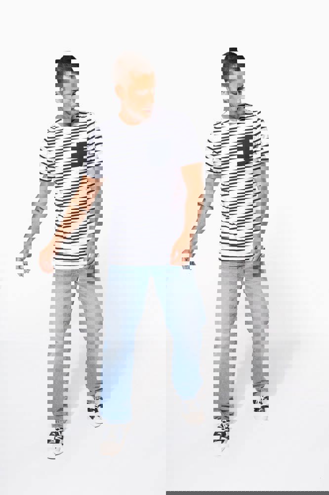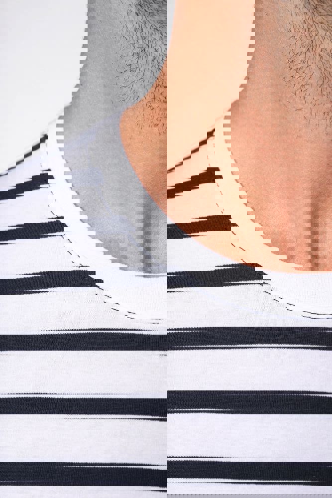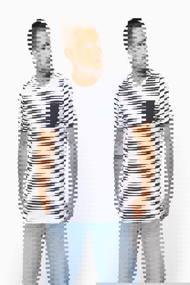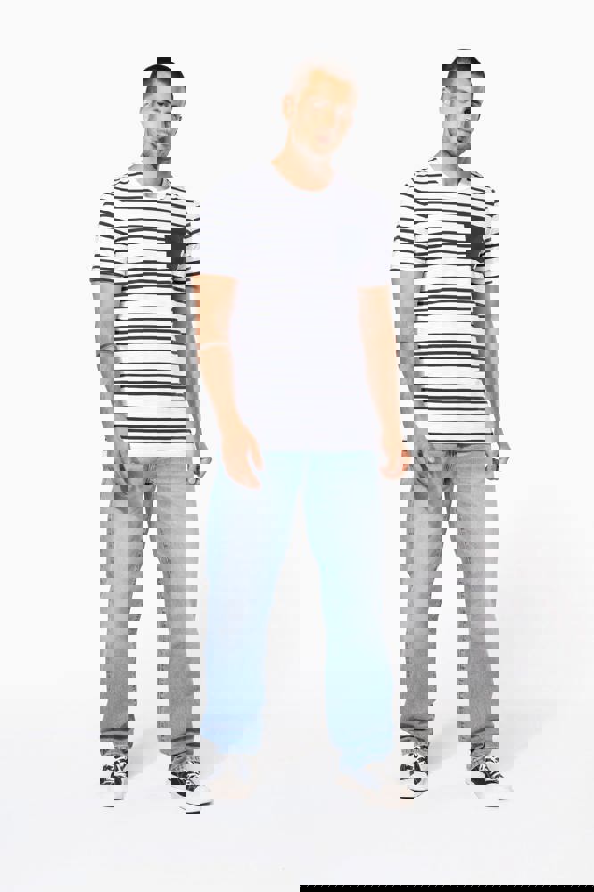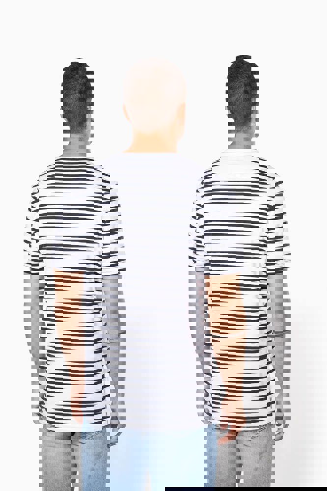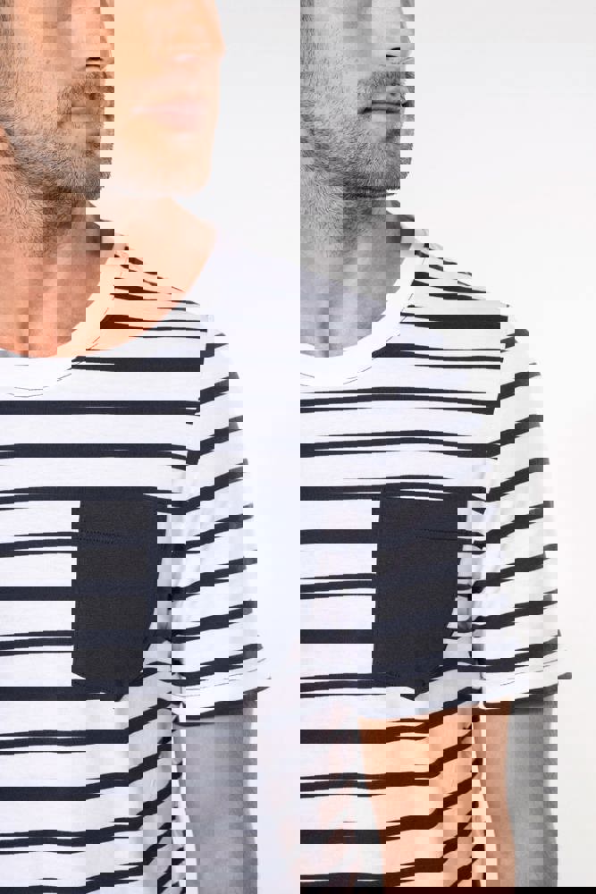K378 - Gestreept T-shirt met zak en korte mouwen