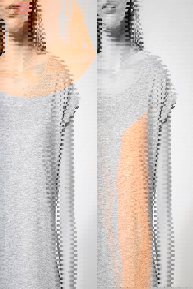 100% gekamd jerseykatoen (Light Grey Heather : 90% katoen / 10% viscose). Comfortabele snit. Brede halsopening met nektape en mouwopeningen afgewerkt met omslagen. Afgerond en dubbel stiksel onderaan. Geen merklabel in de kraag, maar enkel een maatlabel voor eenvoudige personalisatie.