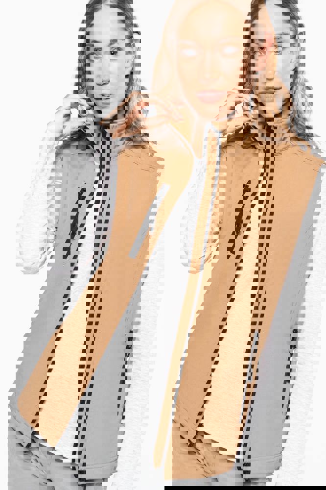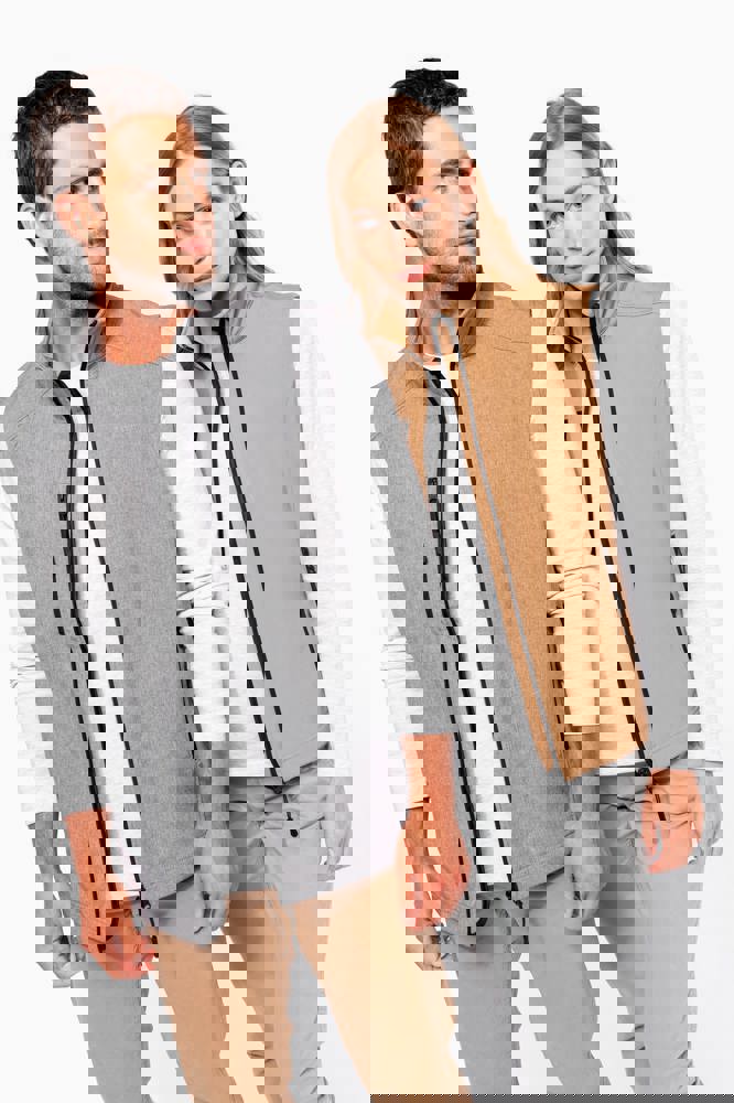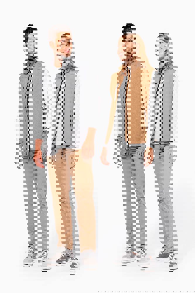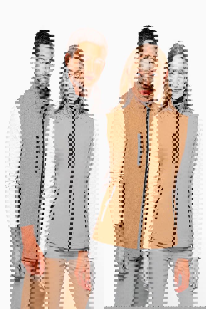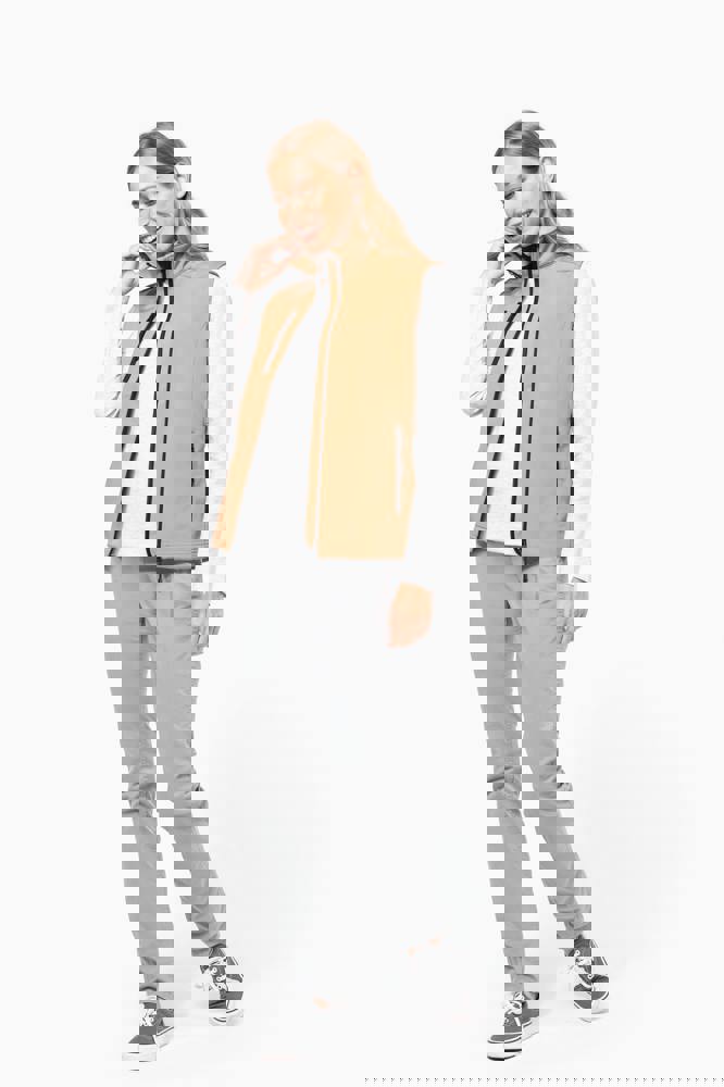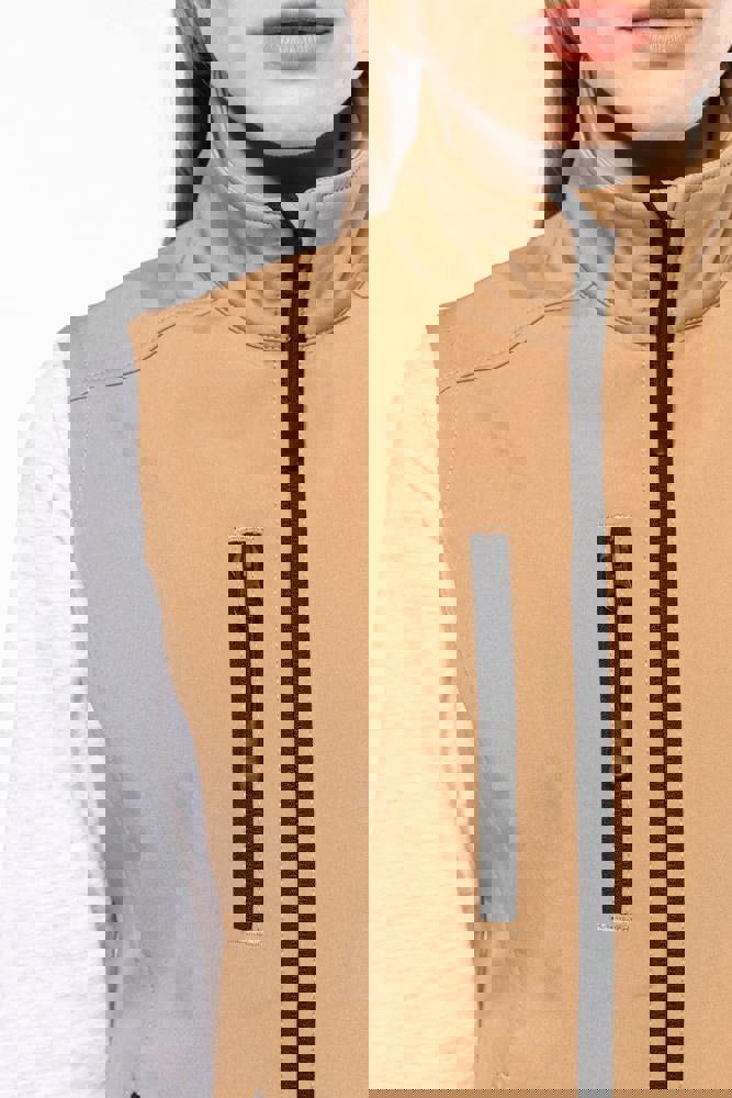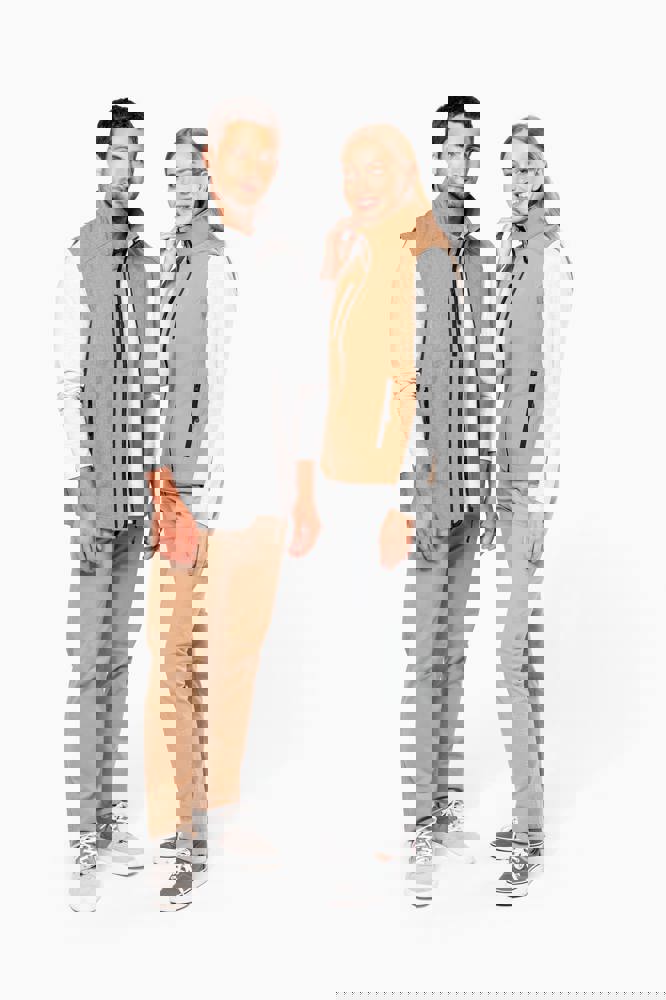 Stof in 3 lagen aan elkaar geklit, ademend 3000 g/m2/24H en 8000 mm waterdicht. Buitenkant: 95% polyester / 5% elasthan. Tussenlaag: ademend membraan. Binnenkant: microfleece.Ritssluiting. Zakken met rits aan de voorkant. 1 zak met rits op de rechterborst.