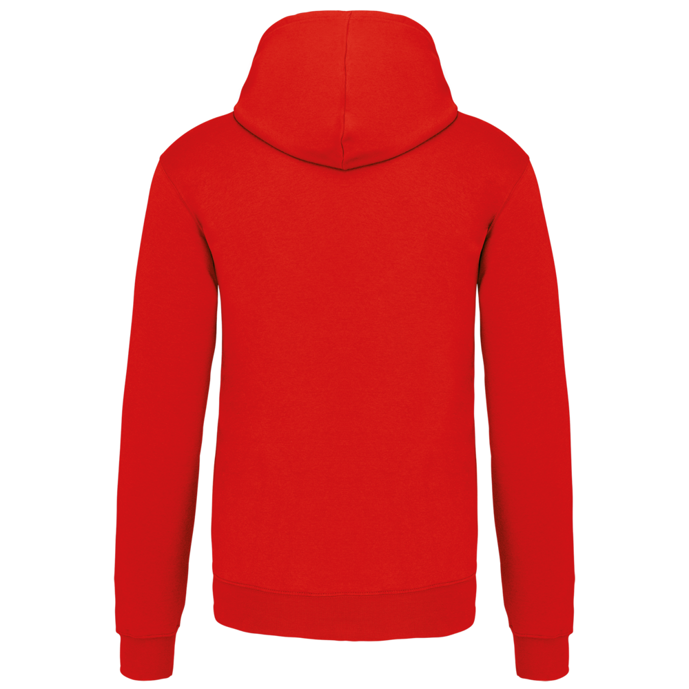 80% katoen / 20% polyester. Gekamd katoen. Geborsteld fleece aan de binnenkant. 'Kangaroe' zak aan de voorkant met gaatje voor draadje en lusje aan de kraag voor mp3-oortjes. Afwerking in ribboord. Gevoerde en gecontrasteerde capuchon met aanrijgkoordjes.