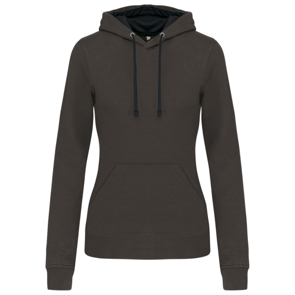 80% katoen / 20% polyester. Gekamd katoen. Geborsteld fleece aan de binnenkant. Gaatje voor draadje in de kangoeroezak en lusje aan de kraag voor oortjes. Ribboord aan mouwuiteinden en onderkant kledingstuk. Gevoerde capuchon in contrasterende kleur met aanrijgkoordjes.