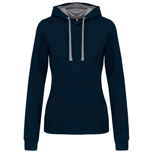 80% katoen / 20% polyester. Gekamd katoen. Geborsteld fleece aan de binnenkant. Gaatje voor draadje in de kangoeroezak en lusje aan de kraag voor oortjes. Ribboord aan mouwuiteinden en onderkant kledingstuk. Gevoerde capuchon in contrasterende kleur met aanrijgkoordjes.