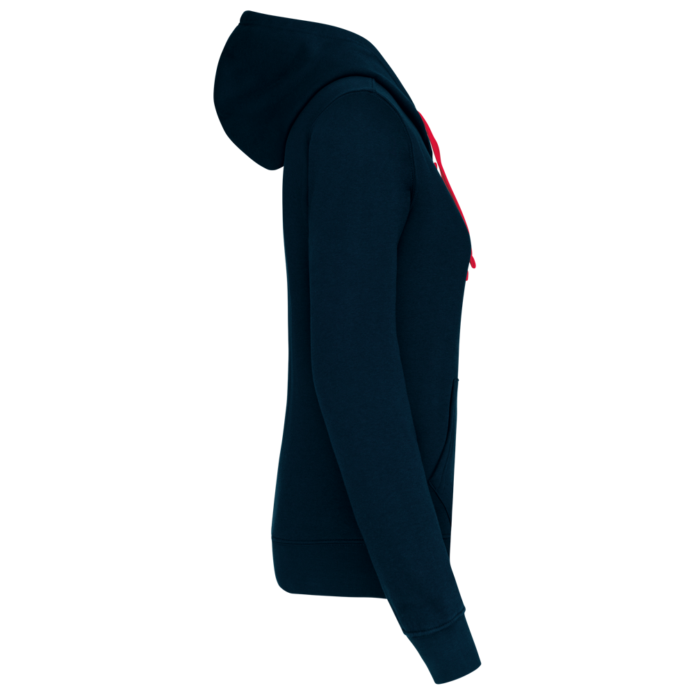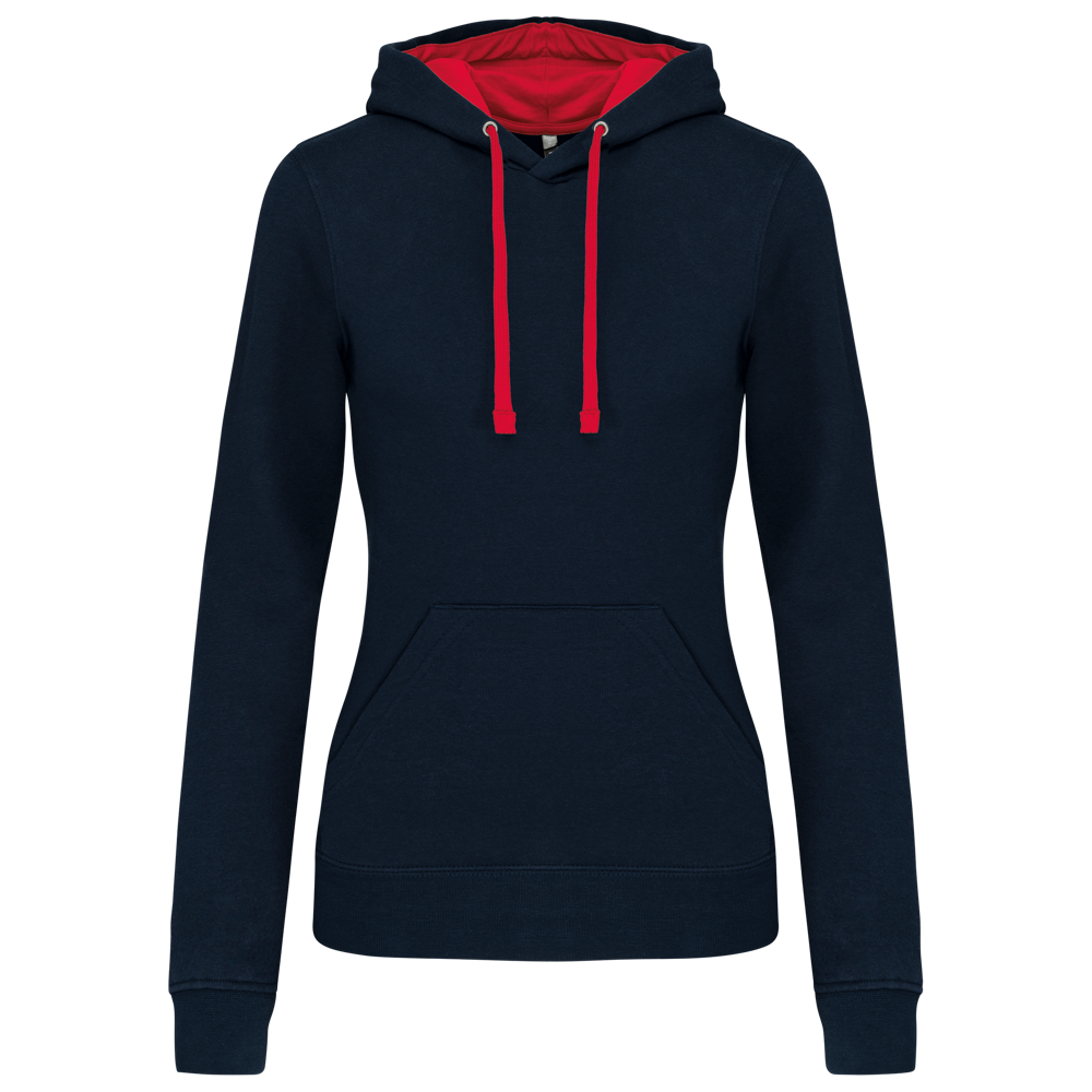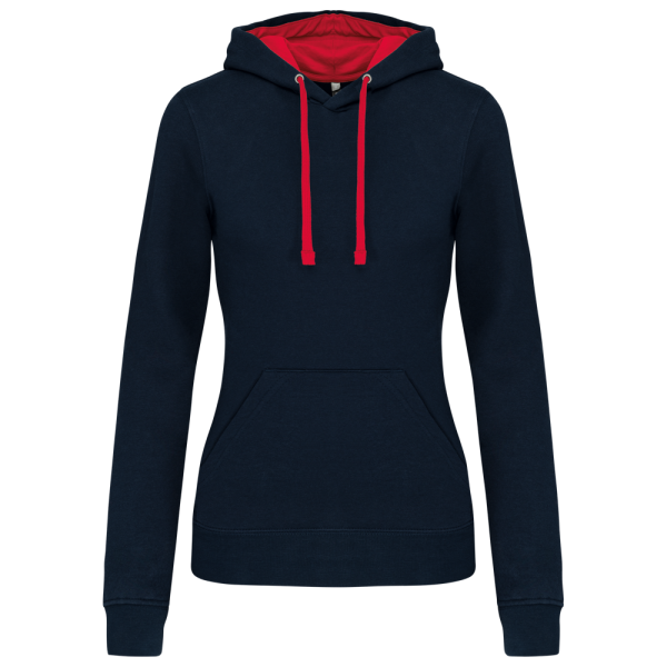 K465 - Damessweater met capuchon in contrasterende kleur