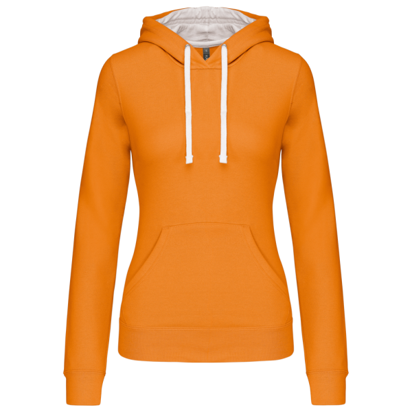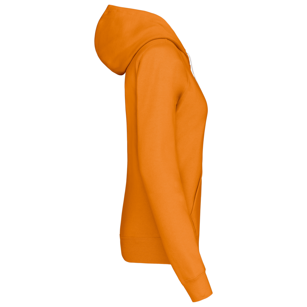 80% katoen / 20% polyester. Gekamd katoen. Geborsteld fleece aan de binnenkant. Gaatje voor draadje in de kangoeroezak en lusje aan de kraag voor oortjes. Ribboord aan mouwuiteinden en onderkant kledingstuk. Gevoerde capuchon in contrasterende kleur met aanrijgkoordjes.