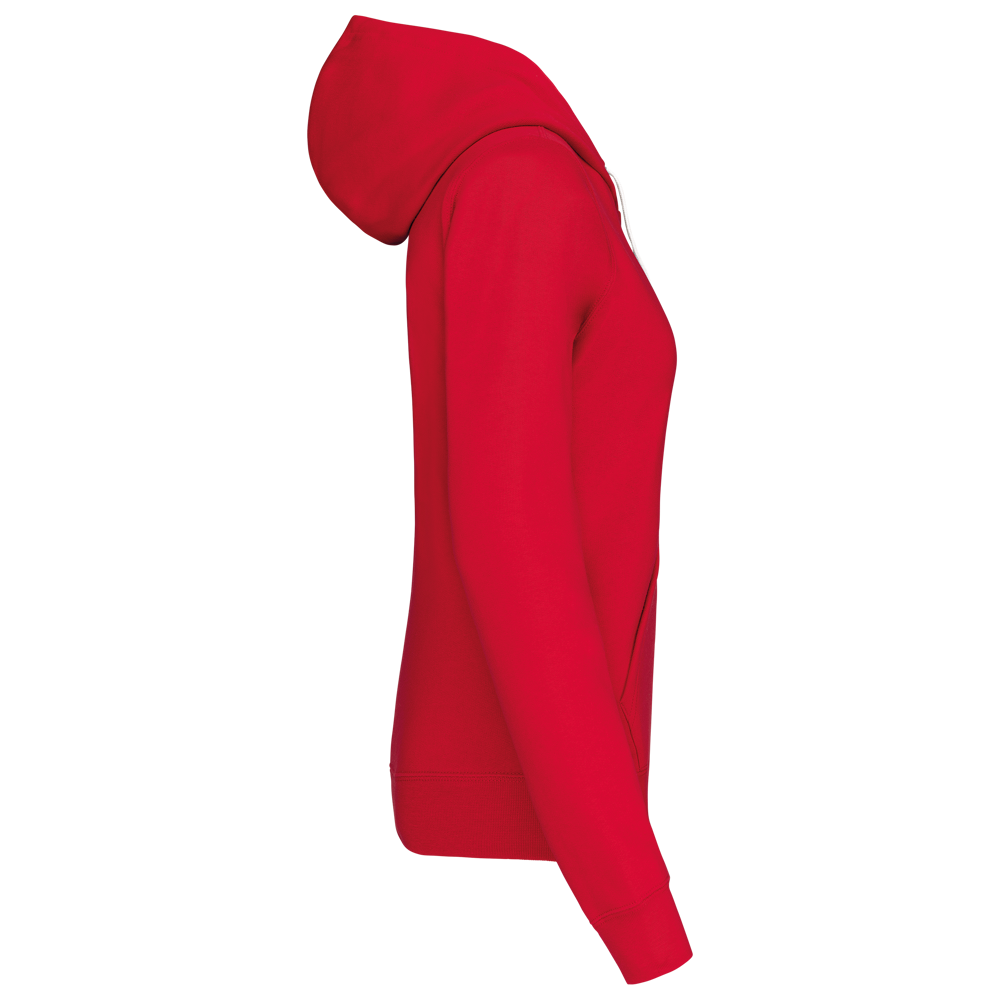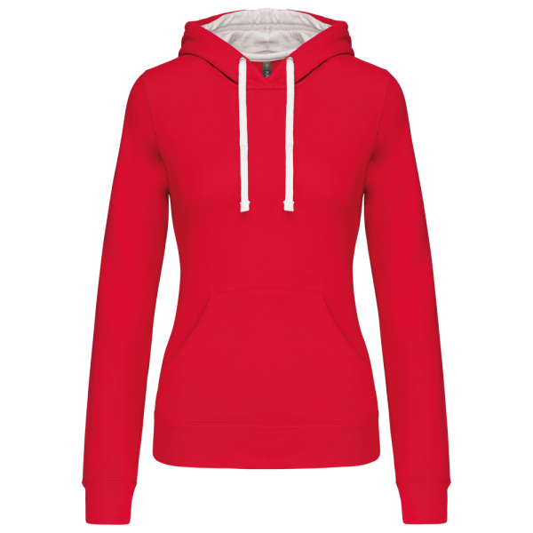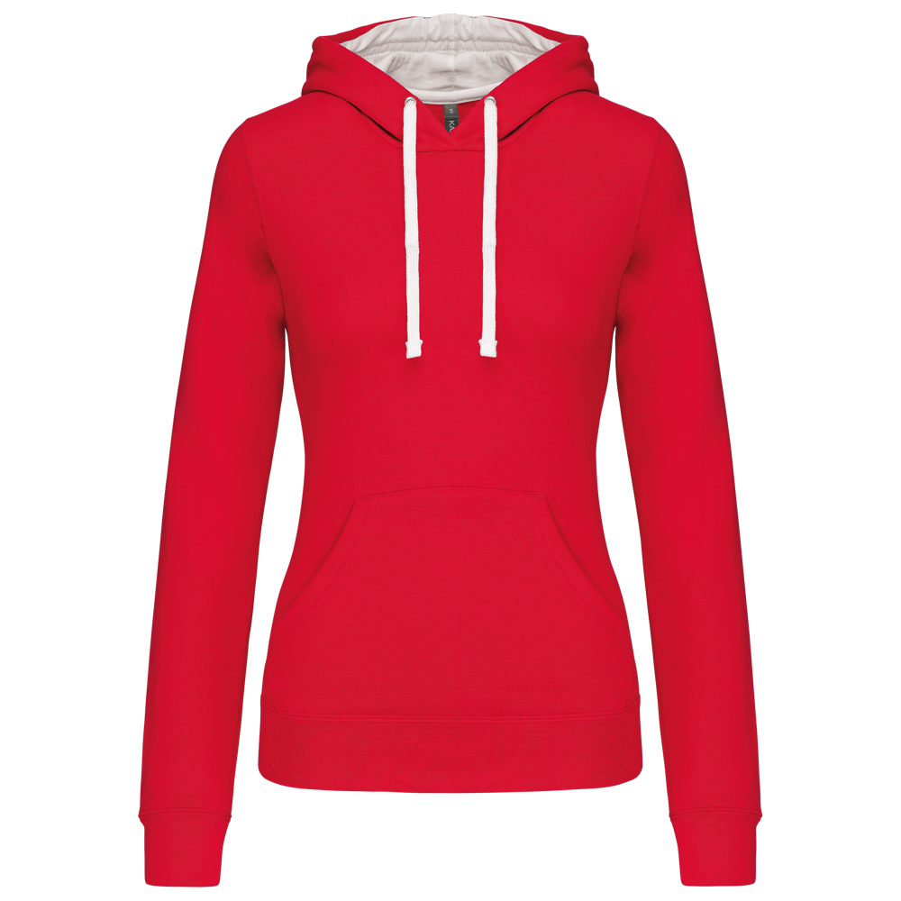 80% katoen / 20% polyester. Gekamd katoen. Geborsteld fleece aan de binnenkant. Gaatje voor draadje in de kangoeroezak en lusje aan de kraag voor oortjes. Ribboord aan mouwuiteinden en onderkant kledingstuk. Gevoerde capuchon in contrasterende kleur met aanrijgkoordjes.
