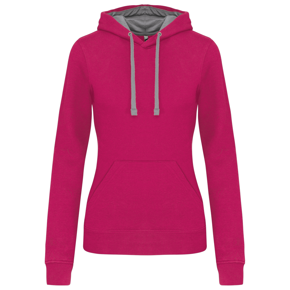 K465 - Damessweater met capuchon in contrasterende kleur