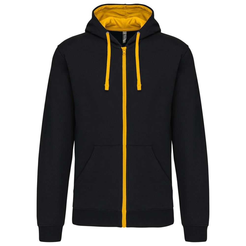 K466 - Herensweater met rits en capuchon in contrasterende kleur