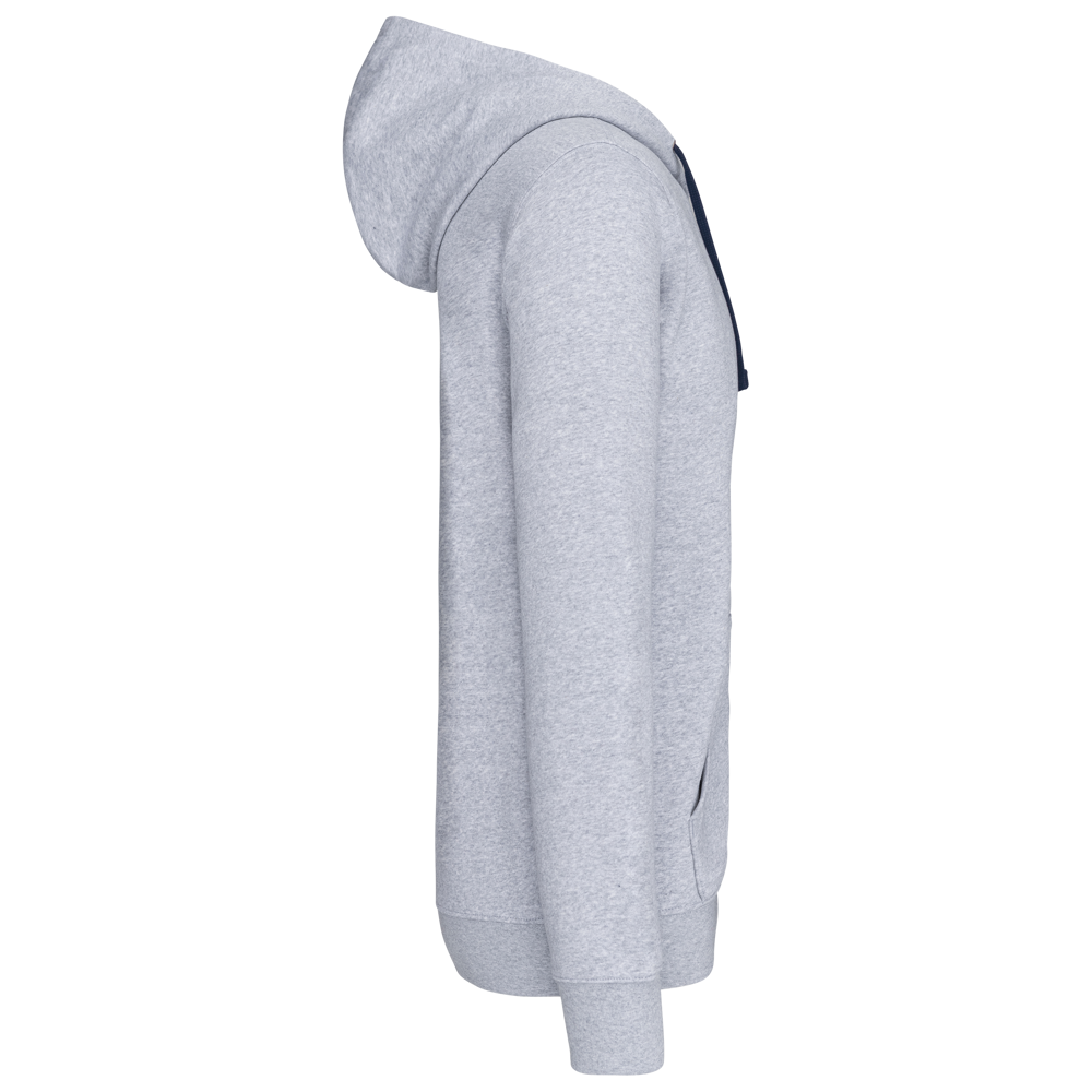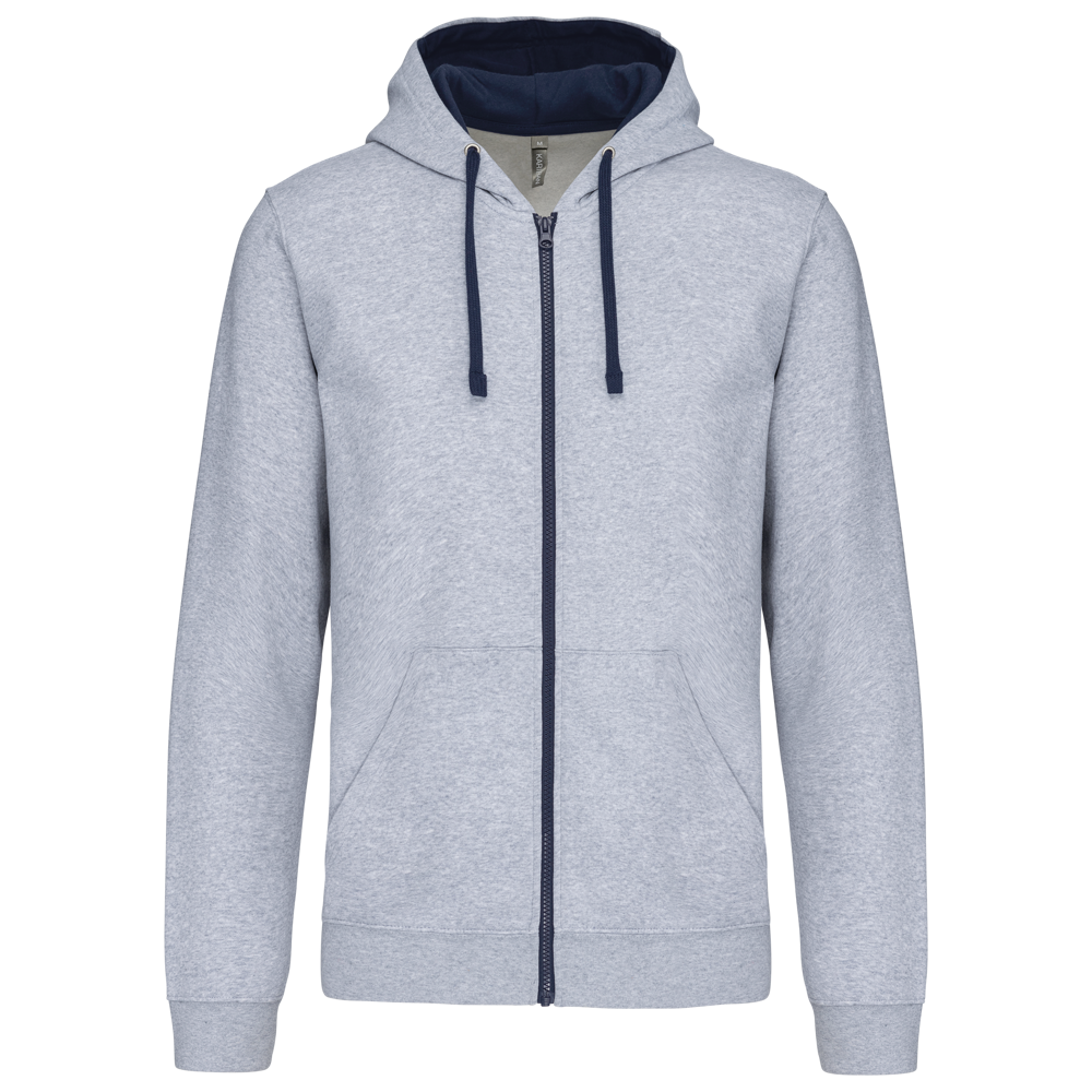 K466 - Herensweater met rits en capuchon in contrasterende kleur