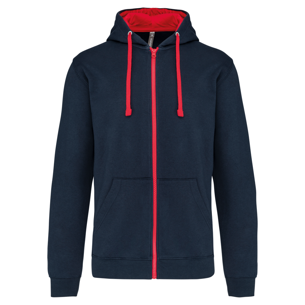 K466 - Herensweater met rits en capuchon in contrasterende kleur