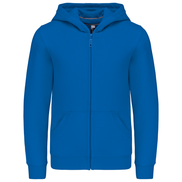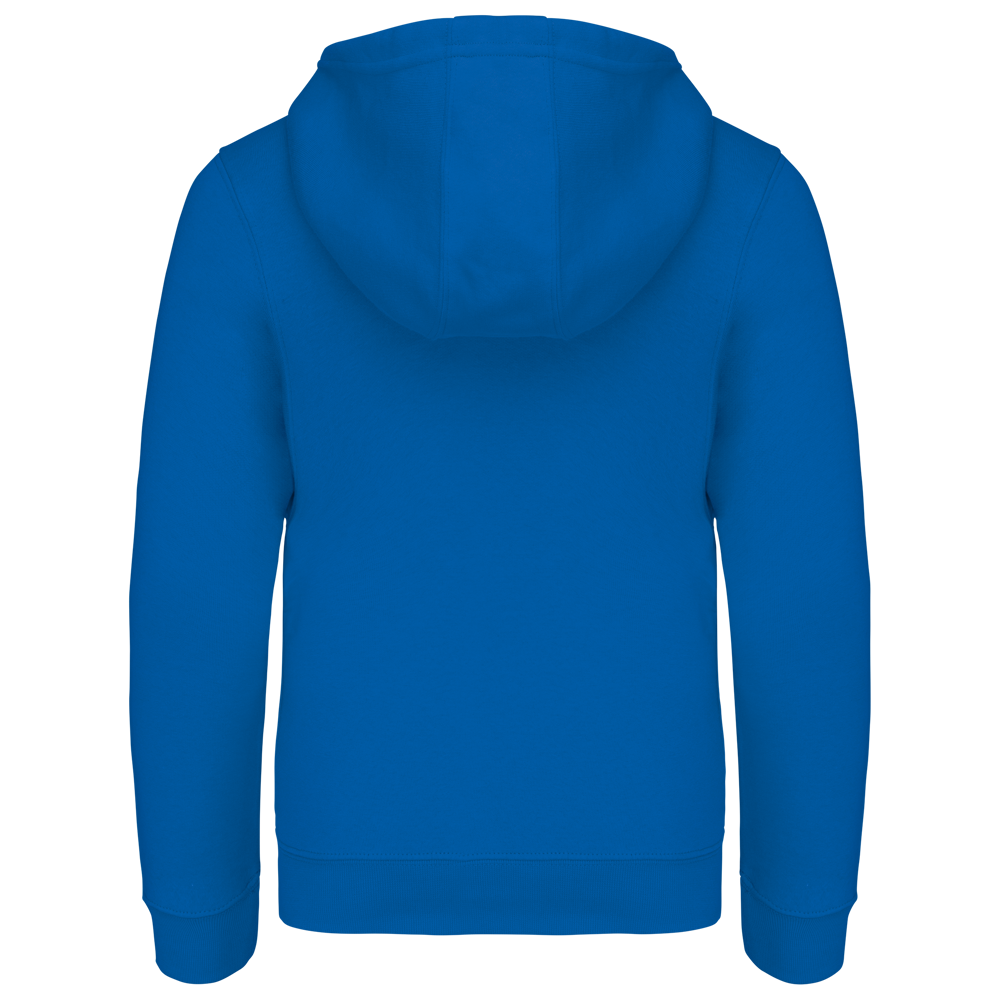 80% katoen / 20% polyester. Gekamd katoen. Geborsteld fleece aan de binnenkant. Nektape in contrastkleur. (Navy voor de kleur Oxford Grey en Oxford Grey voor alle andere kleuren). Gevoerde capuchon in honinggraatstructuur. 'Kangaroe' zakken. Afwerking in rib aan de zakken, mouwuiteinden en onderaan. Ritssluiting.