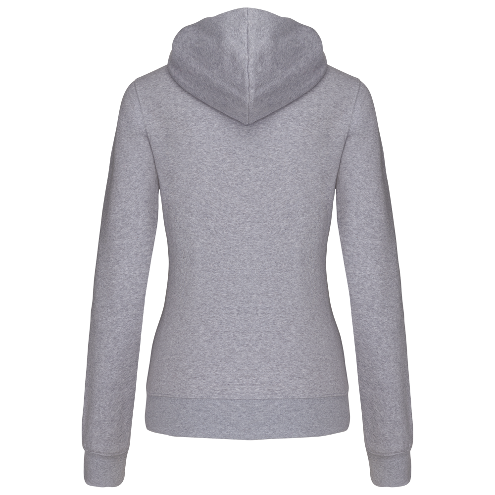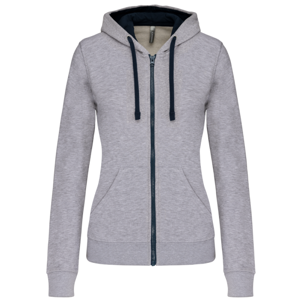 K467 - Damessweater met rits en capuchon in contrasterende kleur