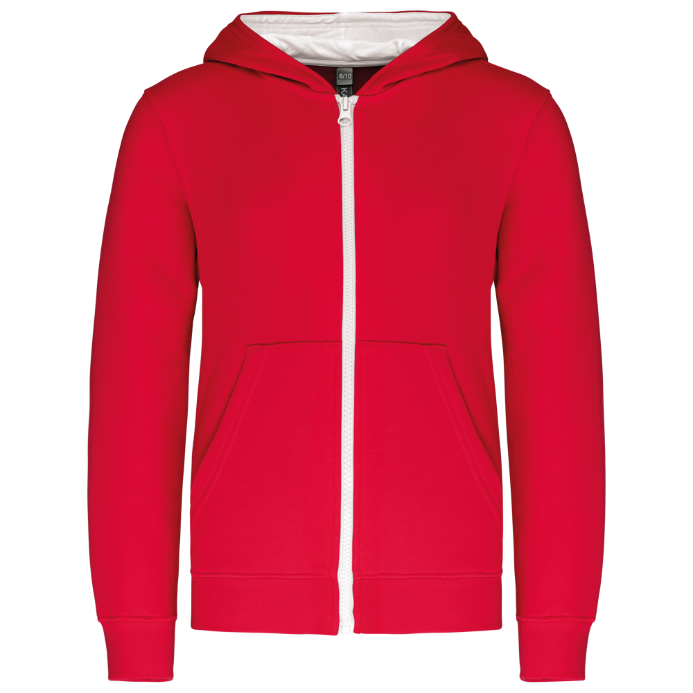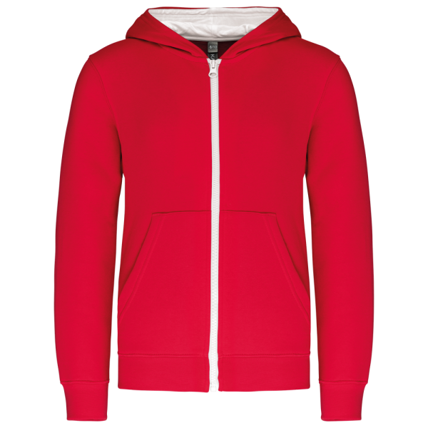 80% gekamd katoen / 20% polyester (Oxford Grey: 76% gekamd katoen / 21% polyester / 3% viscose). Geborsteld fleece aan de binnenkant. Ribboord aan mouwuiteinden en onderkant kledingstuk. Gevoerde capuchon in contrasterende kleur. Contrasterende rits. Opening voor headset-snoer in de kangoeroezak en halsopening.