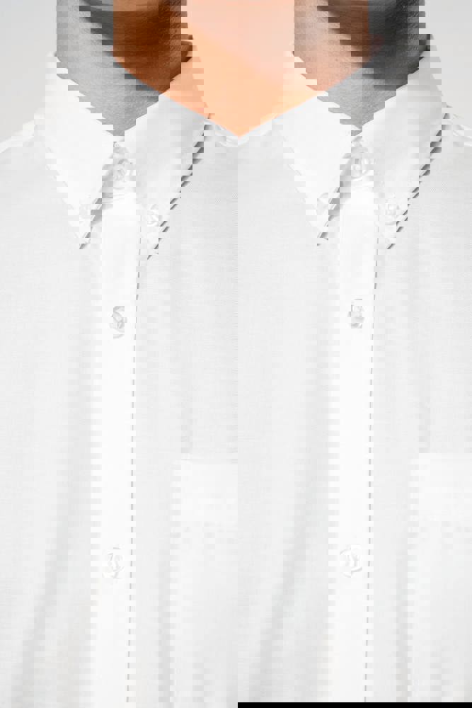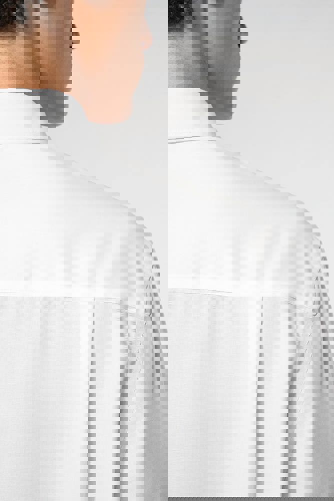 100% micro sergé katoen. Non-iron technologie. Button down. Toon op toon knopen. Borstzakje. Dubbel inzetstuk op de rug en 2 plooitjes. Afgewerkt met dubbele vouwnaden. Verstelbare omgeslagen mouwen. 2 extra knopen. Afgerond boord aan de onderkant.