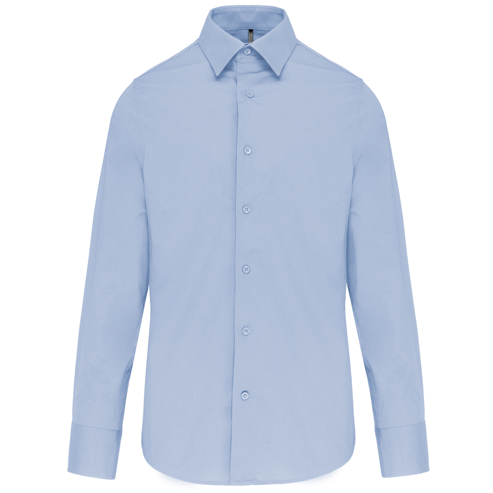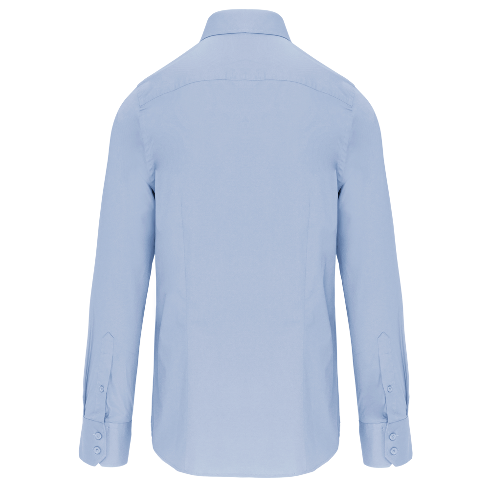 97% katoen / 3% elasthan. Getailleerd overhemd en comfortabele pasvorm. Verstevigde kraag met baleinen. Toon op toon knopen. Dubbel inzetstuk op de rug. Plooitjes aan de achterkant. Afgewerkt met dubbele vouwnaden. Omgeslagen mouwuiteinden met 2 knopen. 2 extra knopen. Afgerond boord aan de onderkant.