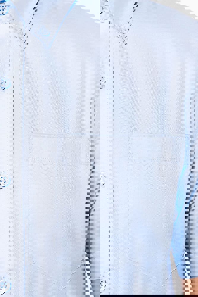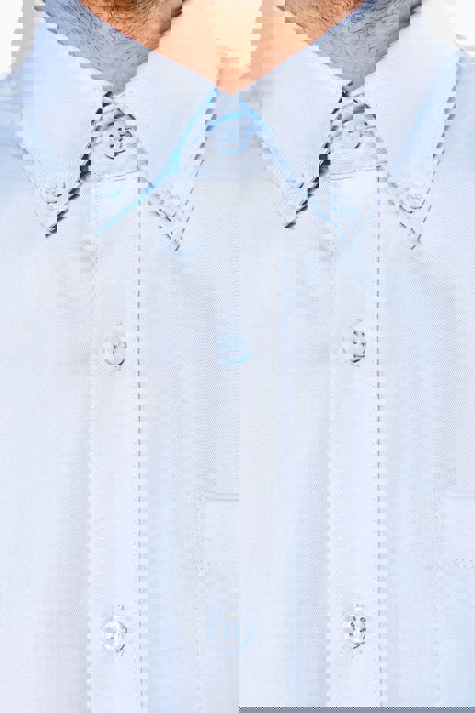 100% micro sergé katoen. Non-iron technologie. Button down. Toon op toon knopen. Borstzakje. Dubbel inzetstuk op de rug en 2 plooitjes. Afgewerkt met dubbele vouwnaden. Mouwuiteinden omgezoomd. 2 extra knopen. Afgerond boord aan de onderkant.