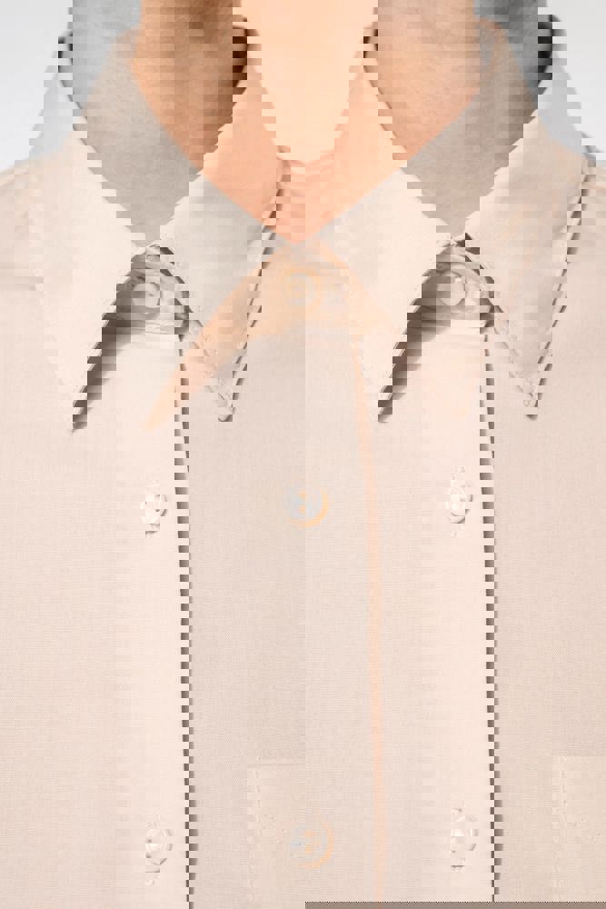 65% polyester / 35% popelinekatoen. Gemakkelijk in onderhoud (EasyCare). Kraag zonder knopen. Toon-op-toon knopen. Borstzakje links in v-vorm. 1 extra knoop. Afgerond boord aan de onderkant.