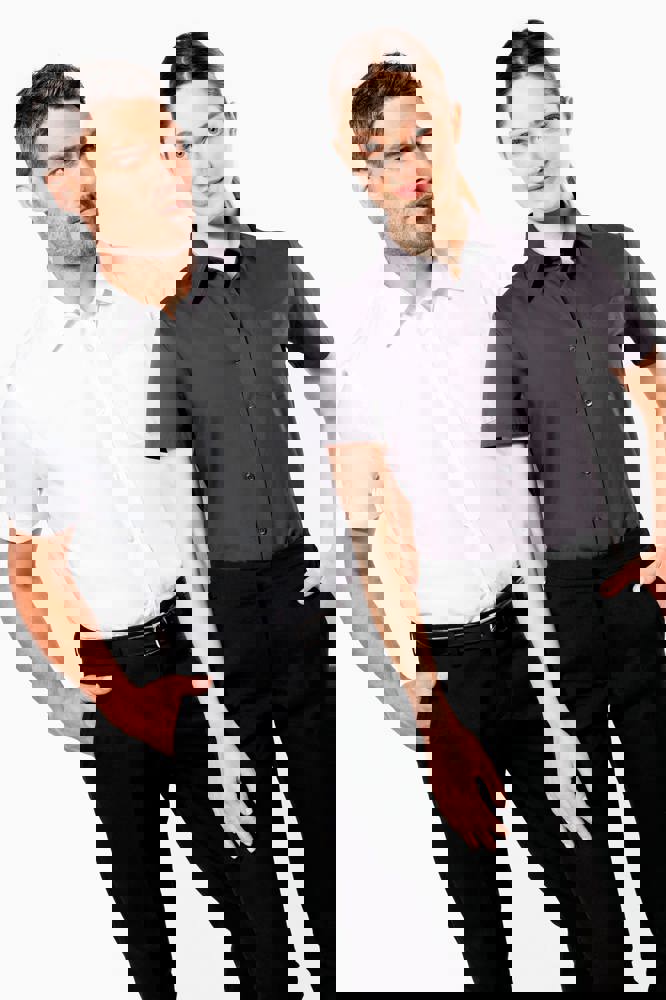 K543 - Heren poplin overhemd korte mouwen