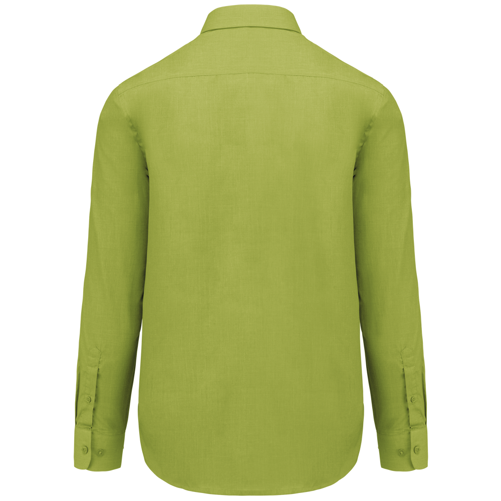 65% polyester / 35% katoen. Gemakkelijk in onderhoud (Easy Care). Verstevigde kraag met baleinen. Toon op toon knopen. Borstzak links met afgeronde hoeken. Dubbel inzetstuk op de rug. Afgewerkt met dubbele vouwnaden. Verstelbare mouwen en mouwuiteinden met afgeronde hoeken en knoop. 2 extra knopen.