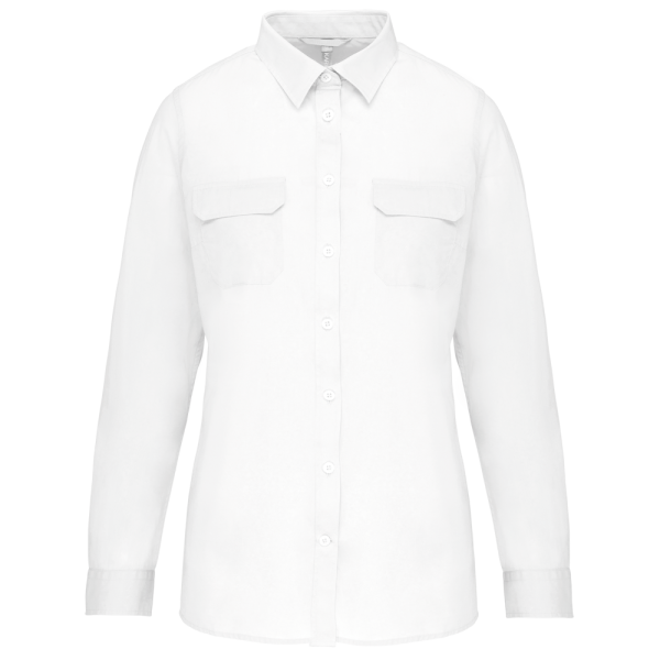 100% katoen. Popeline. Kraag zonder knopen. 2 opgezette zakken met klep aan de voorkant....meer