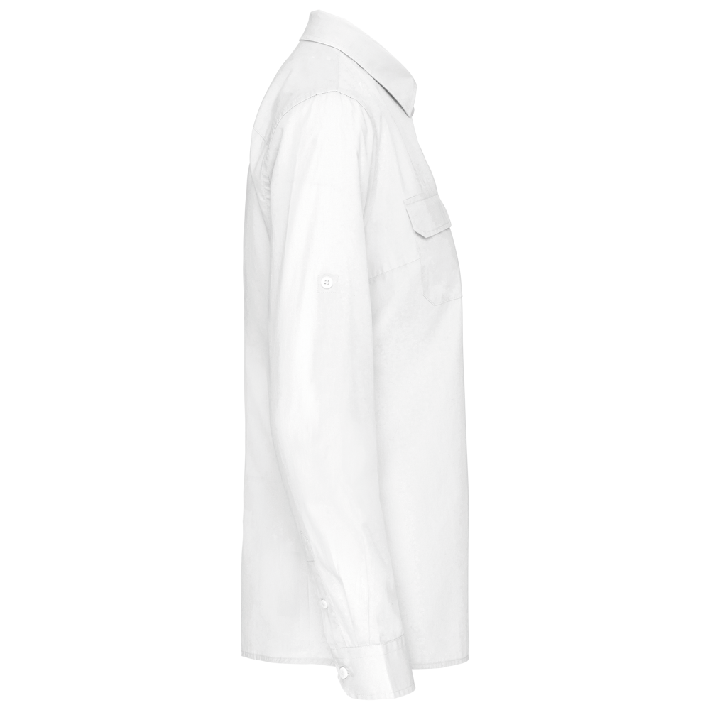 100% katoen. Popeline. Kraag zonder knopen. 2 opgezette zakken met klep aan de voorkant. Verstelbare mouwuiteinden met knoop. Opstroopbare mouwen met een knooplijst. Shirt gewassen. Dit product kreeg een speciale behandeling om het er verouderd te laten uitzien. Dit ambachtelijke procedé maakt dat er kleurverschillen zijn tussen de producten, waardoor elk stuk uniek is.