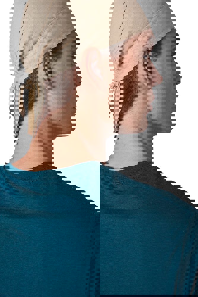 100% geborsteld katoen twill. Sluiting door middel van 2 striklinten aan de achterkant.