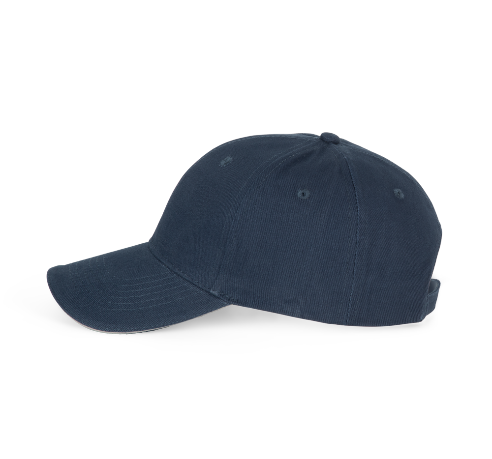 100% zwaar geborsteld katoen twill. Klep met contrasterende bies. Verstelbare sluiting met een zilverkleurige metalen gesp. *3 kleursamenstellingen met extra contrastkleur onder de klep.