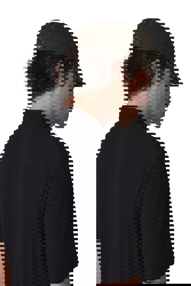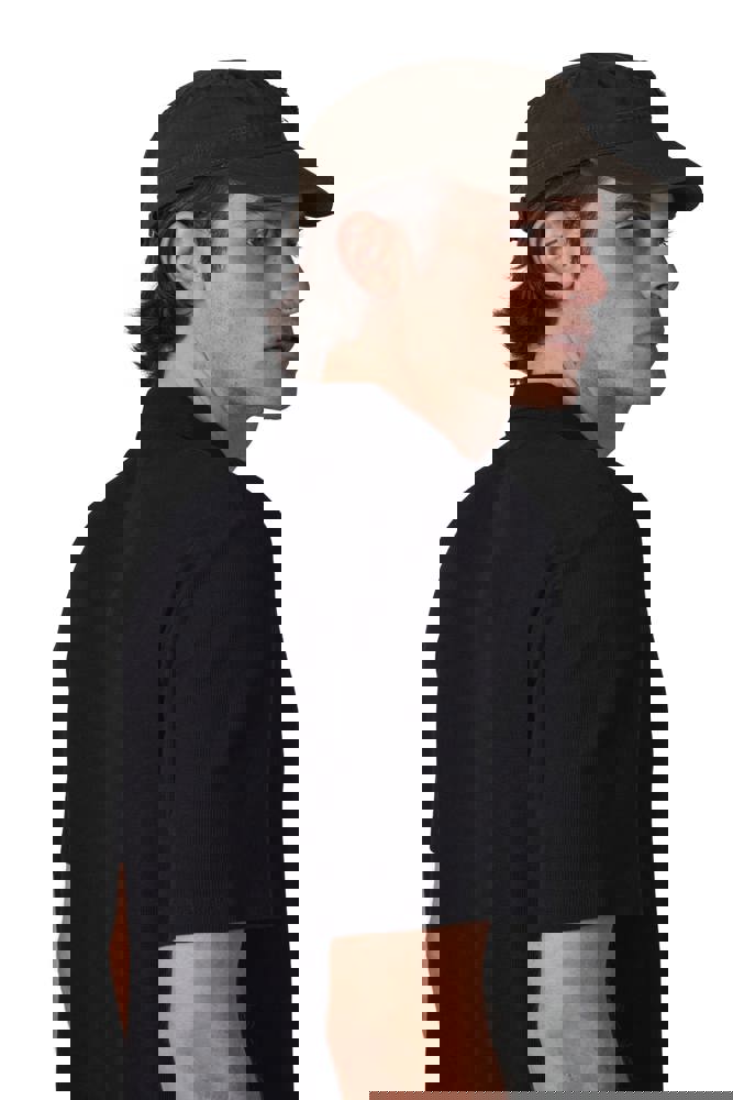100% verwassen katoen twill. Verstelbare sluiting met een metalen gesp.