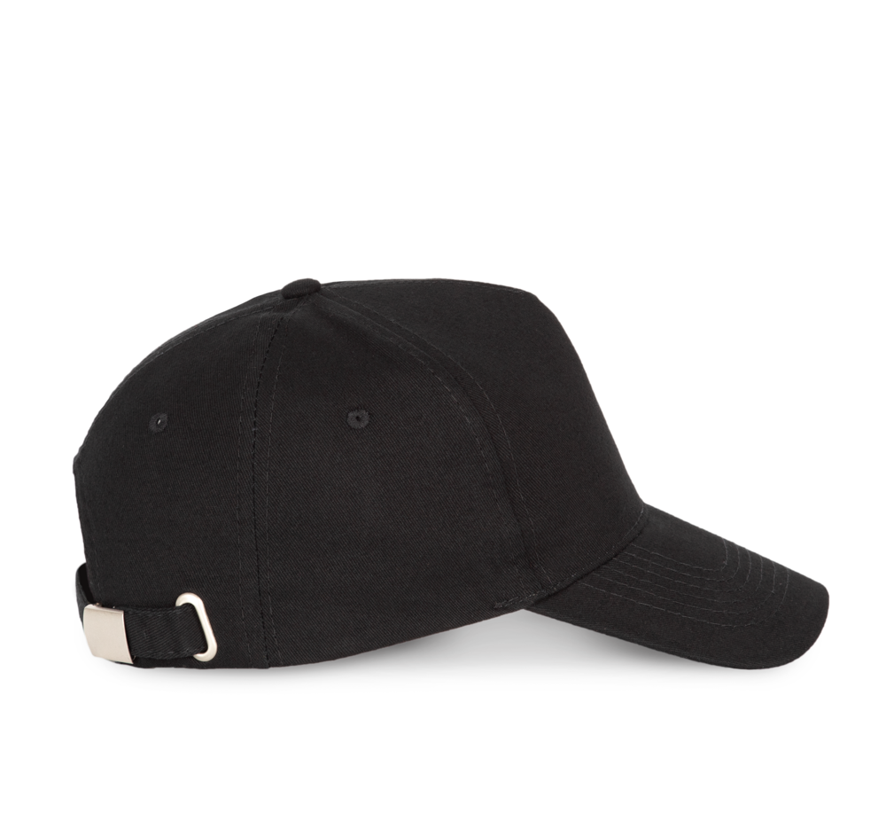 100% katoen twill. Verstevigde voorkant. Voorgevormde klep. Verstelbare sluiting met een zilverkleurige metalen gesp.