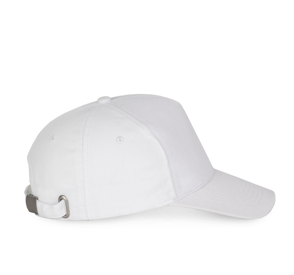 100% katoen twill. Verstevigde voorkant. Voorgevormde klep. Verstelbare sluiting met een zilverkleurige metalen gesp.