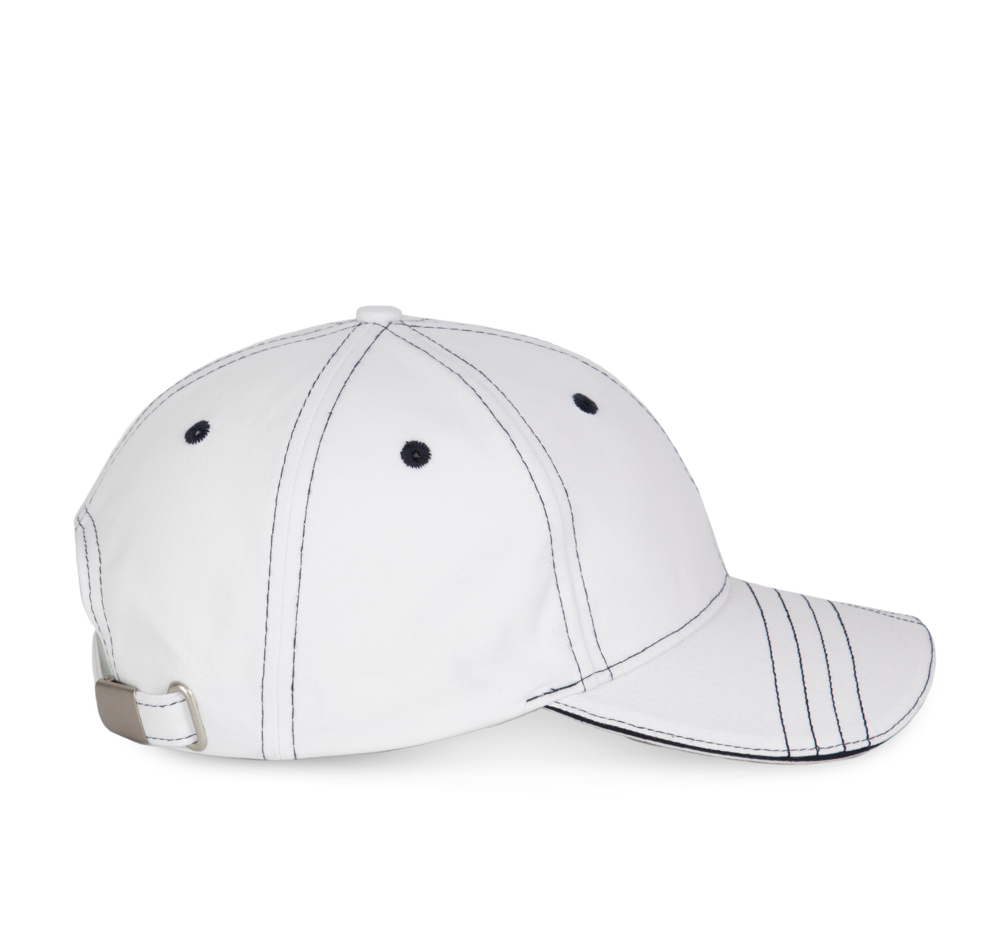 100% geborsteld twill katoen. 6 verstevigde panelen. Eyelets en naden in contrastkleur. Katoenen zweetband.